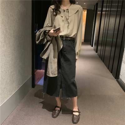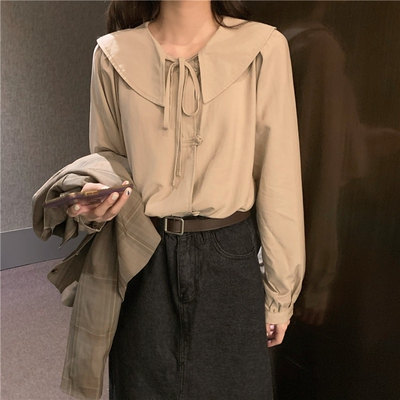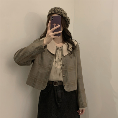Real shot real price ~ Korean retro lotus collar minority shirt + Plaid suit coat~