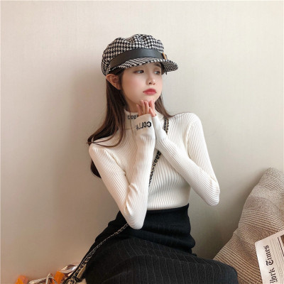 Real shot design letter black high collar sweater for women long sleeve slim and slim Pullover