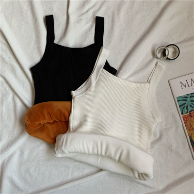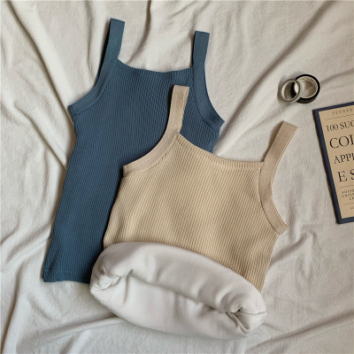 Plush and thickened warm top for women's autumn and winter wear 2020 new slim versatile knitting suspender vest