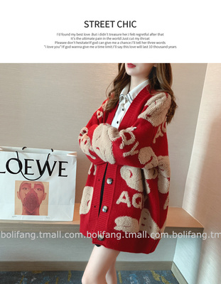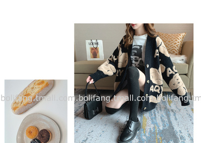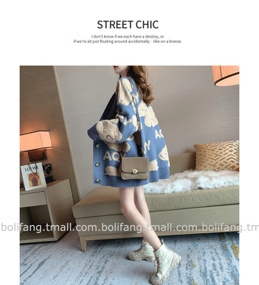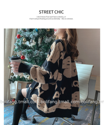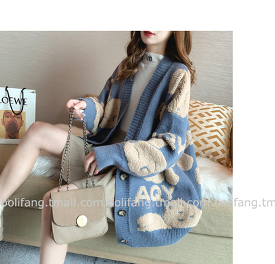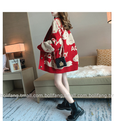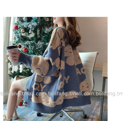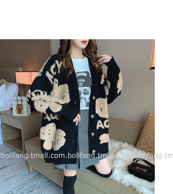 Languid sweater coat women's autumn 2020 new cartoon student knitted cardigan thickened outerwear