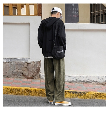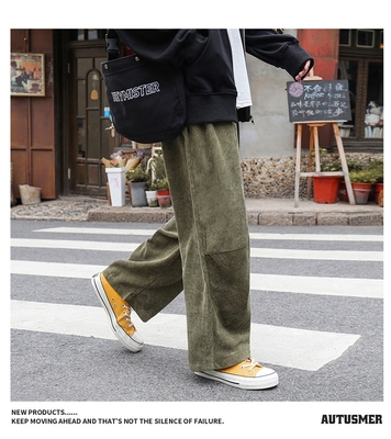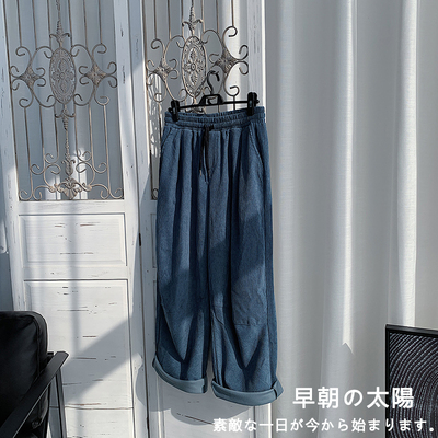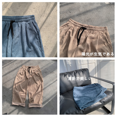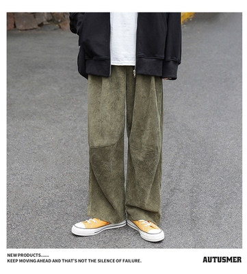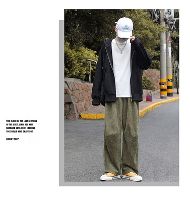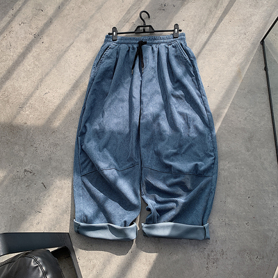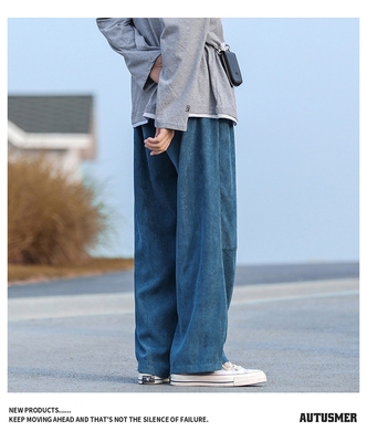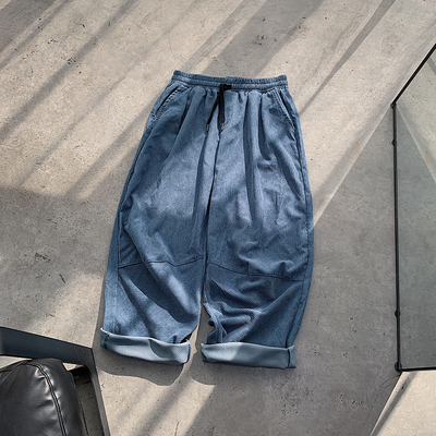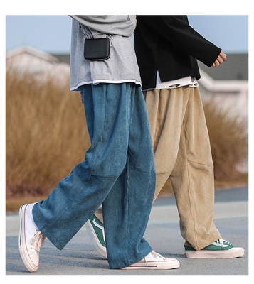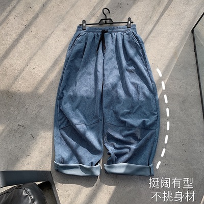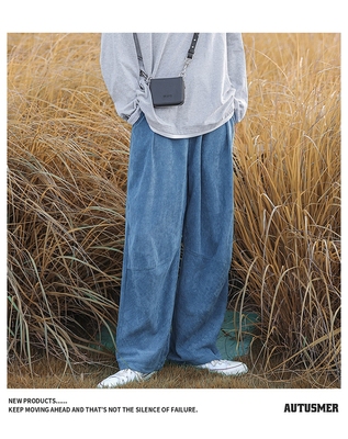 Trendy wide leg straight tube corduroy men's casual pants blue Japanese loose mop pants autumn Khaki