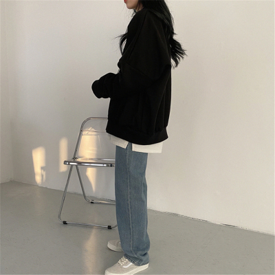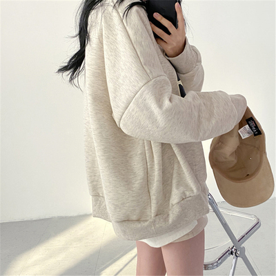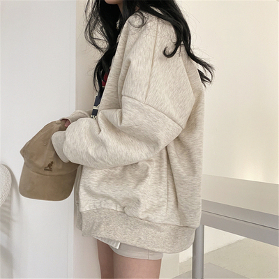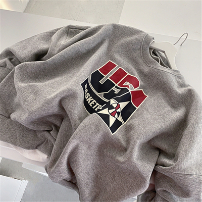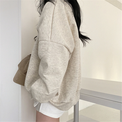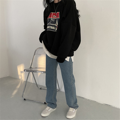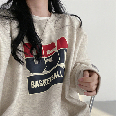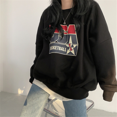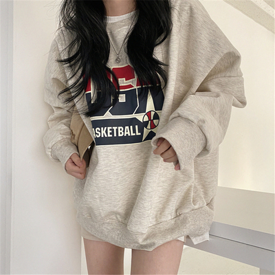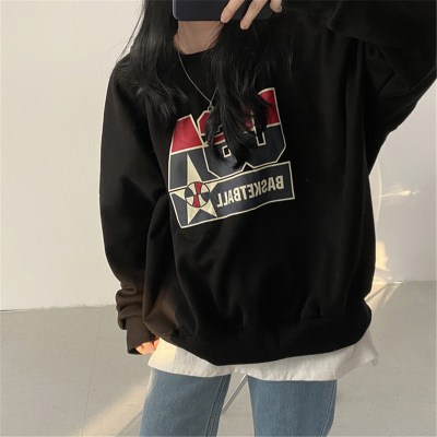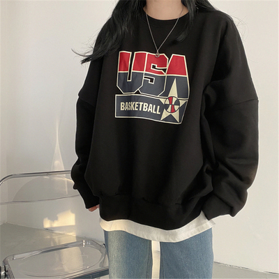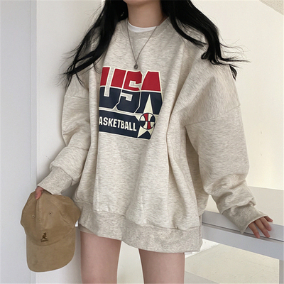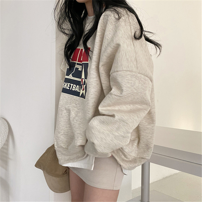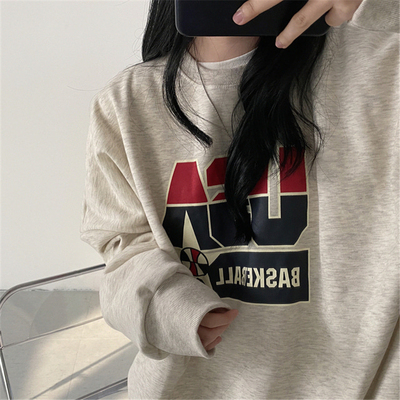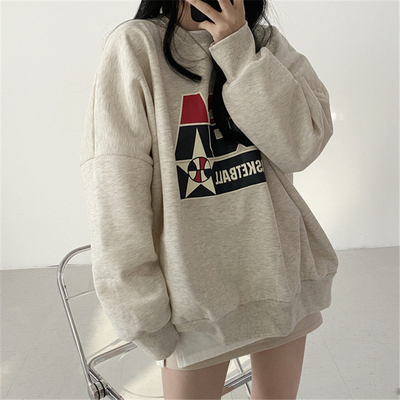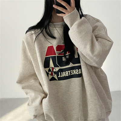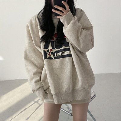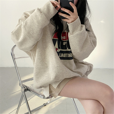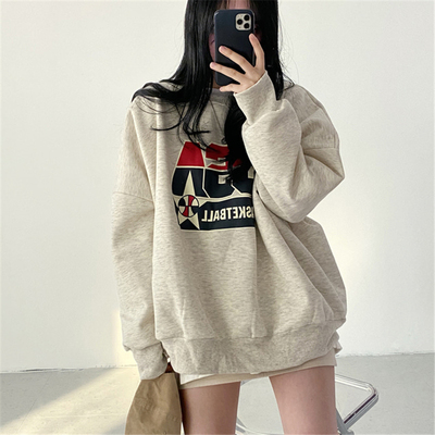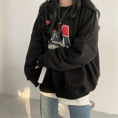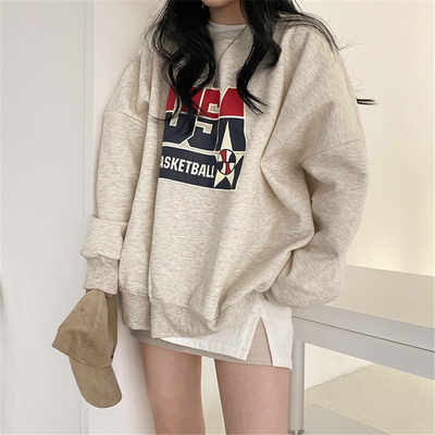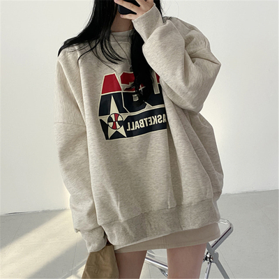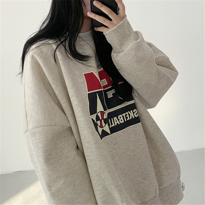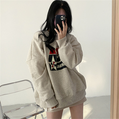 Real shot lettered print Plush sweater 20 winter new lazy round neck Pullover for women