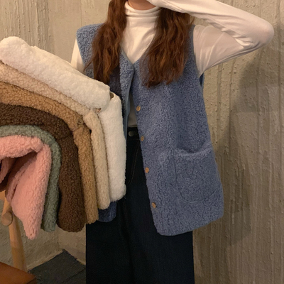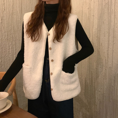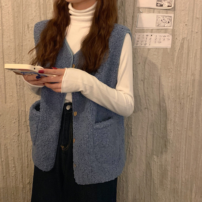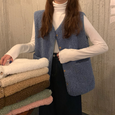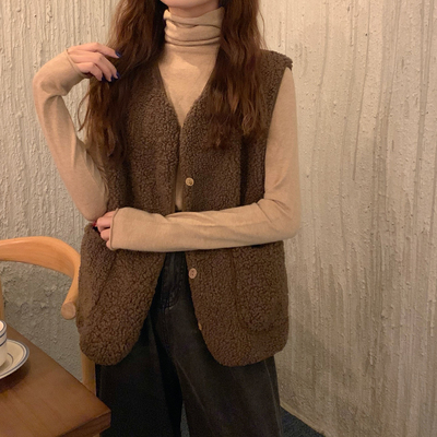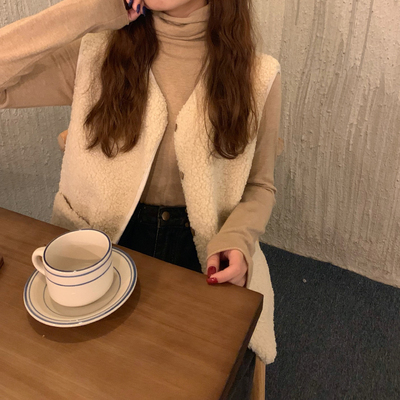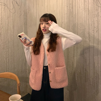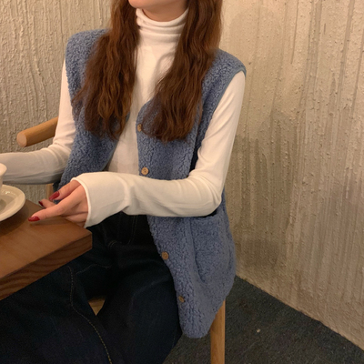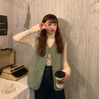 89058906 real price shooting autumn and winter Korean version of foreign style loose Lamb Fur Vest + high collar versatile bottoming shirt