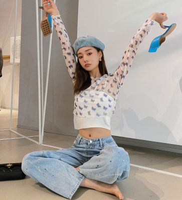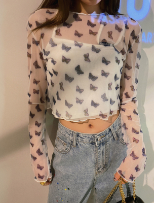 Real shot 2020 fashion design sense two piece wrap around neck hanging neck asymmetric shoulder strap Vest + long sleeve mesh T-shirt