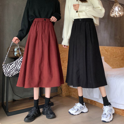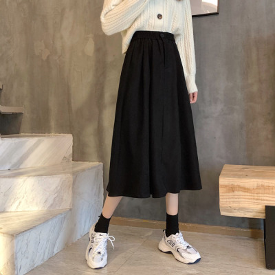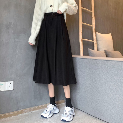 Real price ~ autumn and winter new Korean solid color high waisted slim medium length A-line skirt skirt