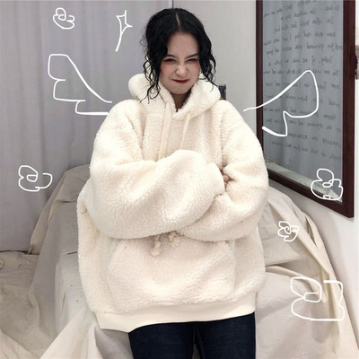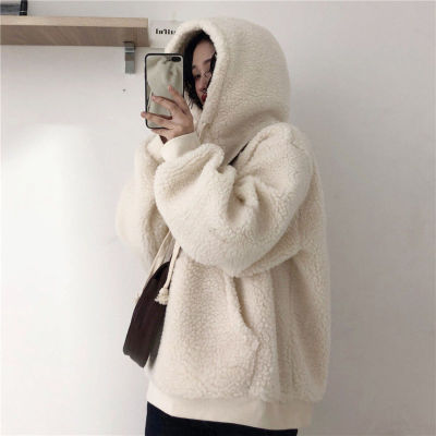 Loose lambskin coat with cashmere thickening in autumn and winter