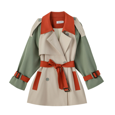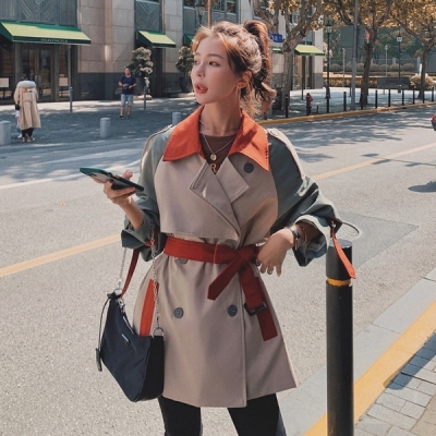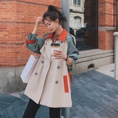 Color contrast and splicing windbreaker women's middle and long 2020 spring and autumn clothes Korean version loose temperament popular British style over the knee coat