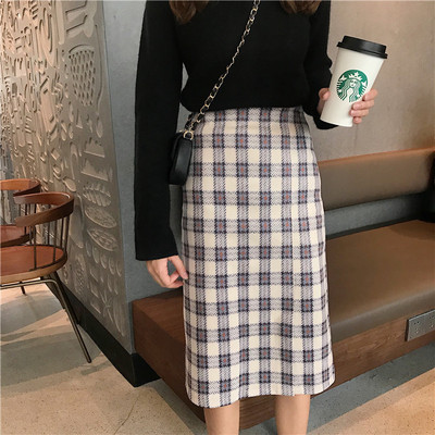 Real shot Plaid A-line skirt half skirt women's bag hip skirt Retro High Waist Skirt short skirt medium length