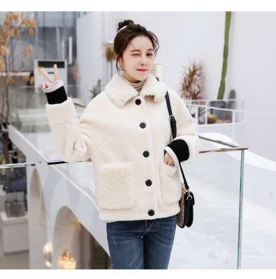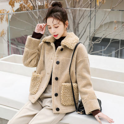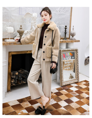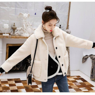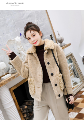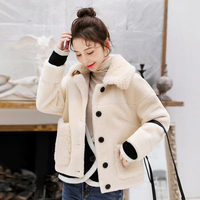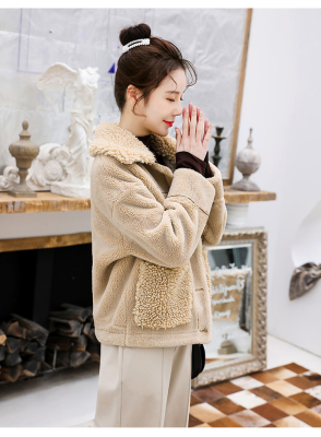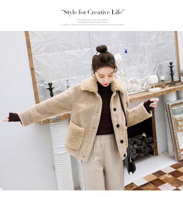 Cashmere thickened imitation lamb wool coat Women Short Korean version loose new autumn and winter lamb cashmere top winter