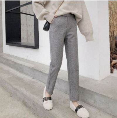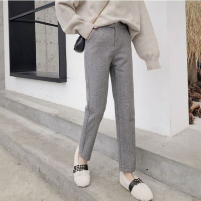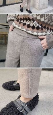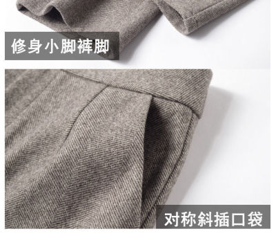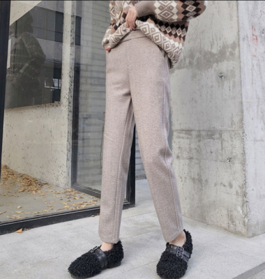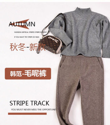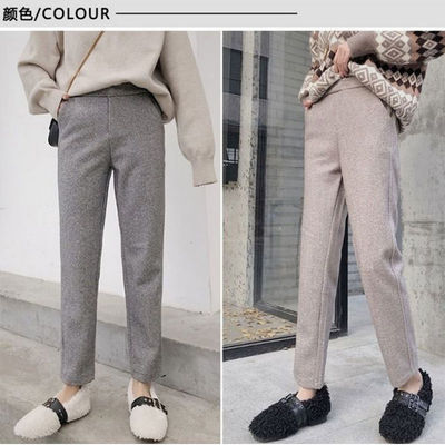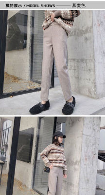 Autumn and winter thickened woolen trousers children's loose and thin elastic high waist straight tube trousers Harun casual pants