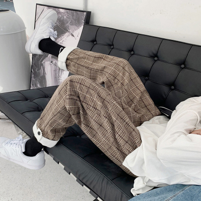 Autumn and winter Korean fashion versatile plaid pants, woolen casual pants, men's loose woolen heavy long pants fashion brand