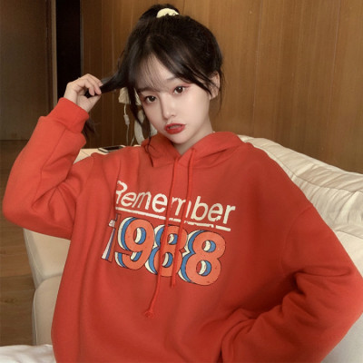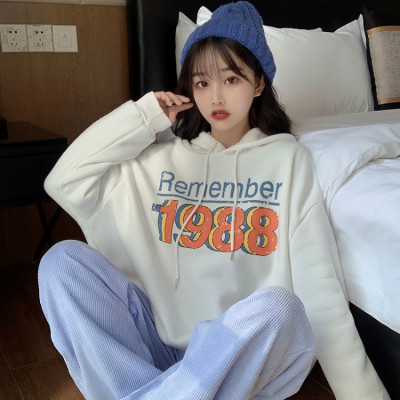 New Korean East Gate drawstring letter print Plush college Pullover Sweater for autumn and winter