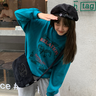 Korean style loose print for real shooting in autumn and winter