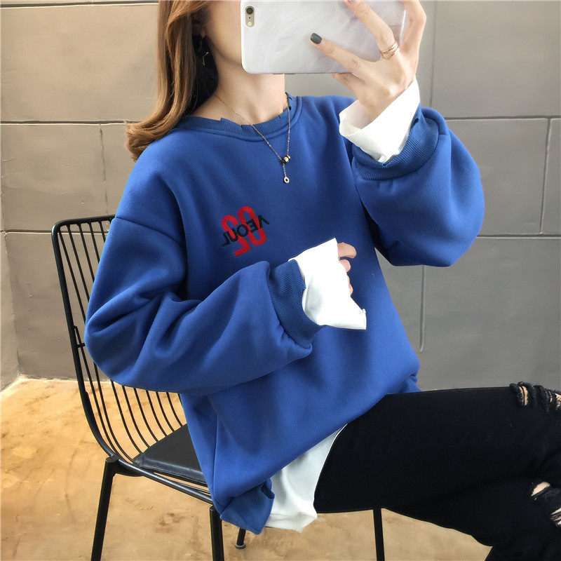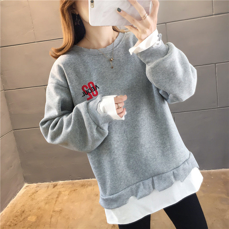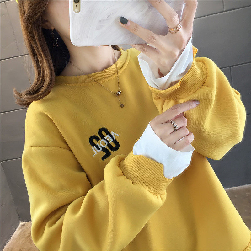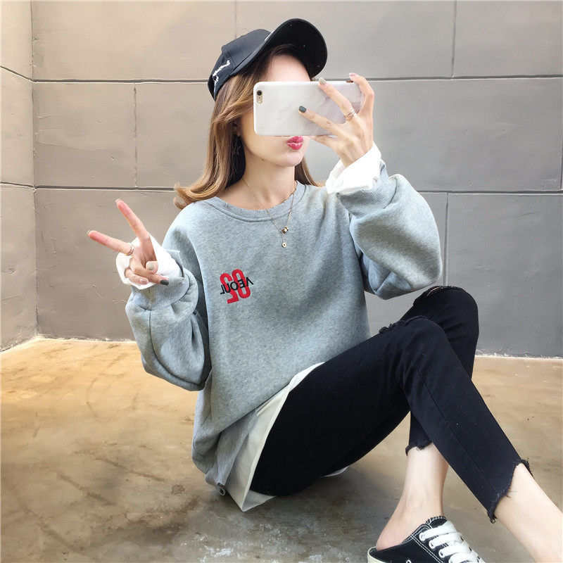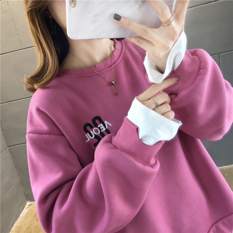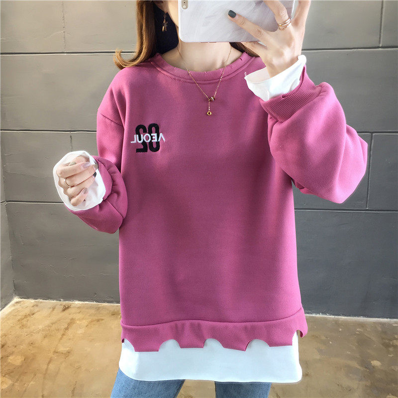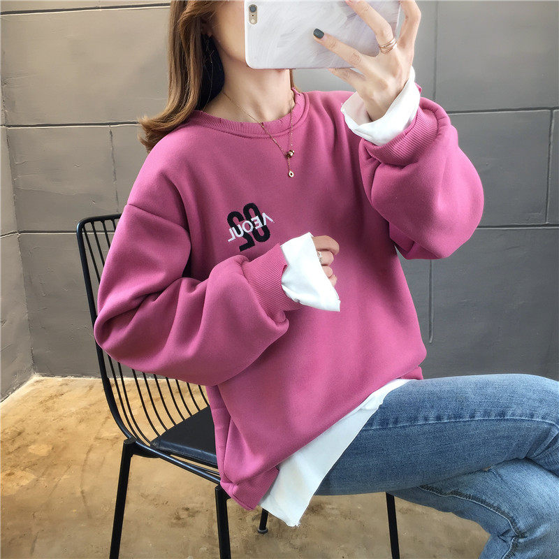 Real shot winter clothes new Korean fashion crew neck letter printing fake two loose and plush sweater women