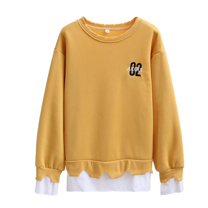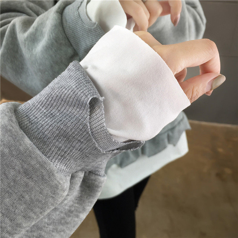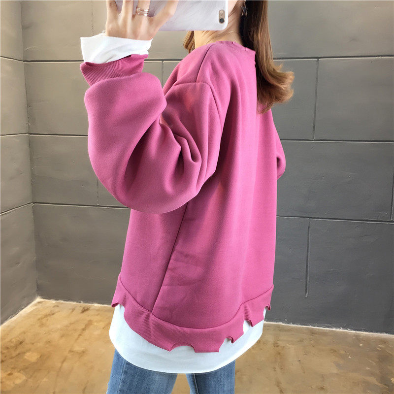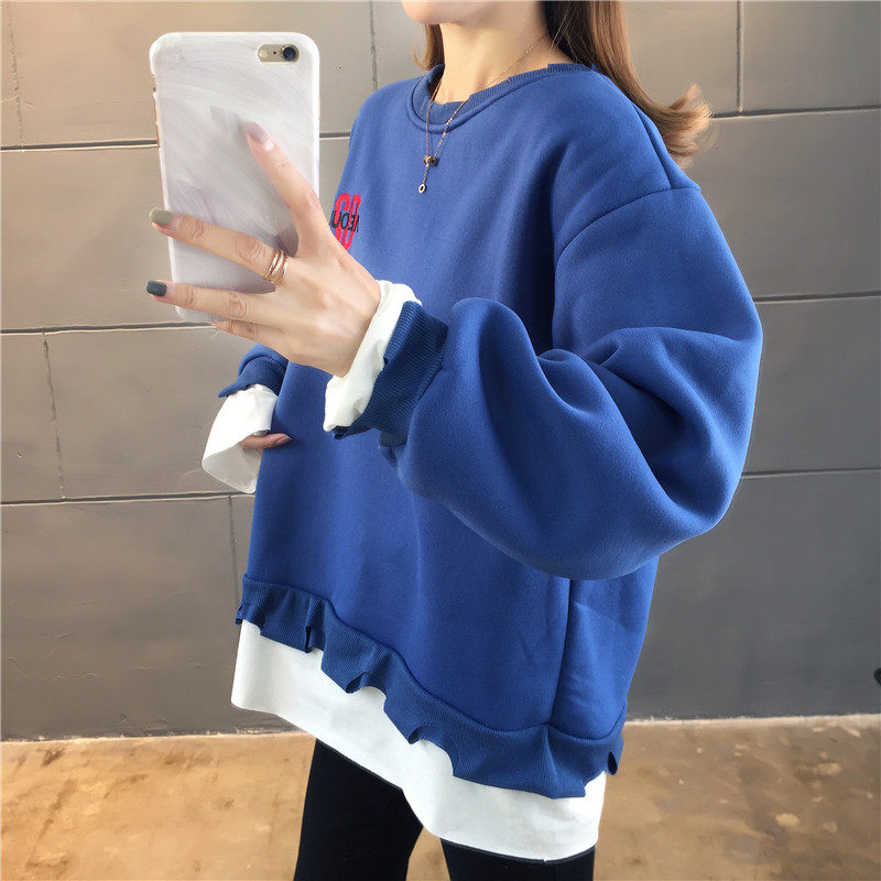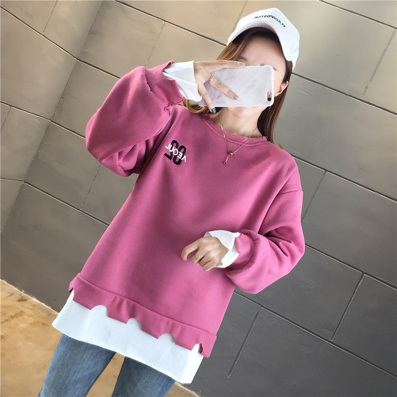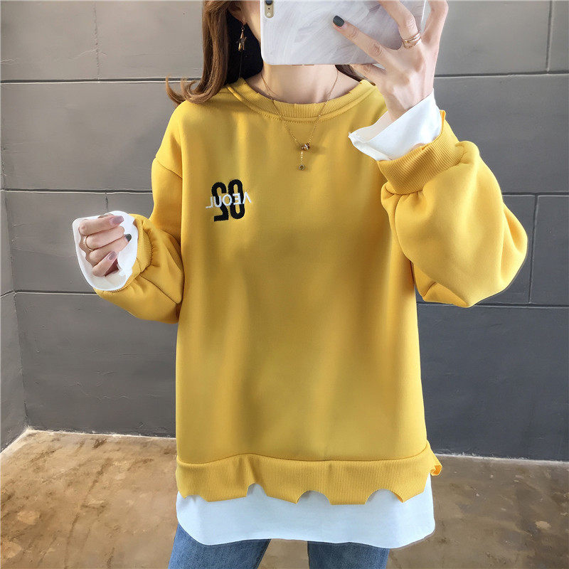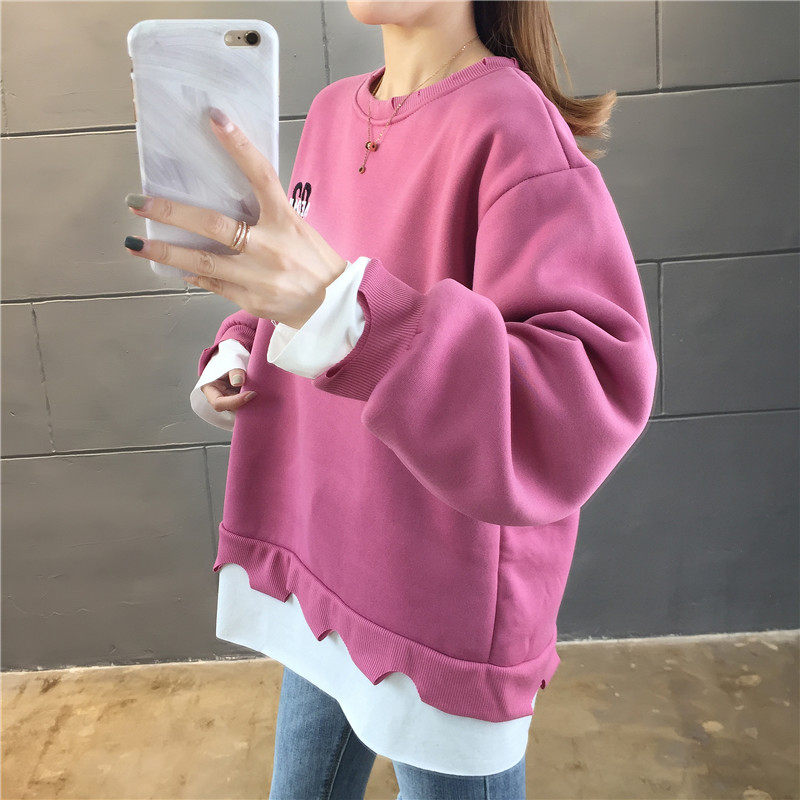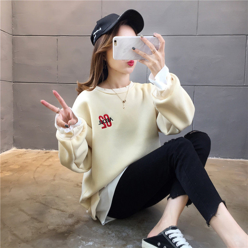 Real shot winter clothes new Korean fashion crew neck letter printing fake two loose and plush sweater women