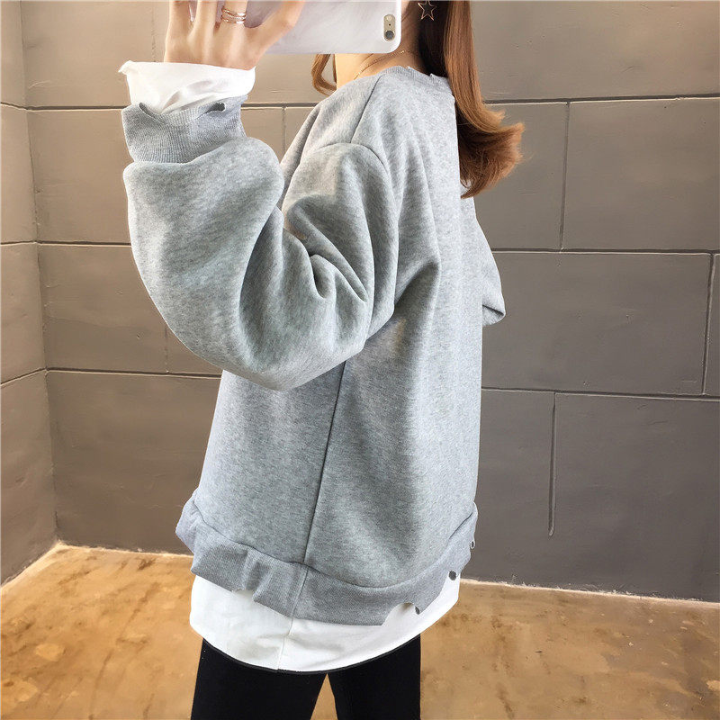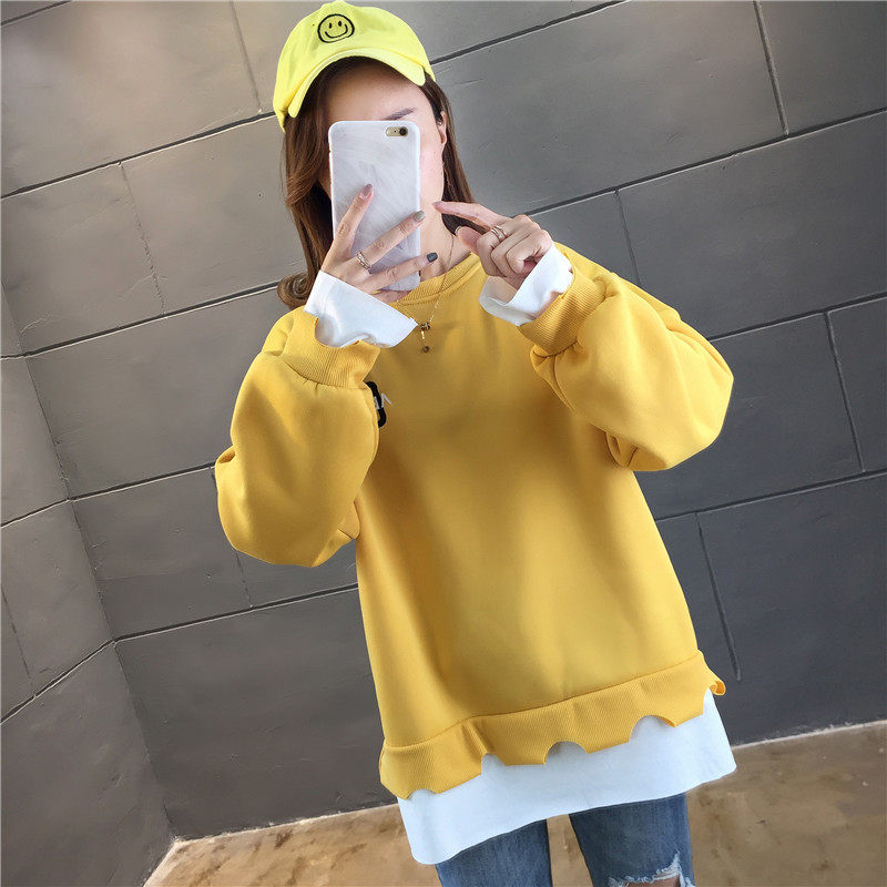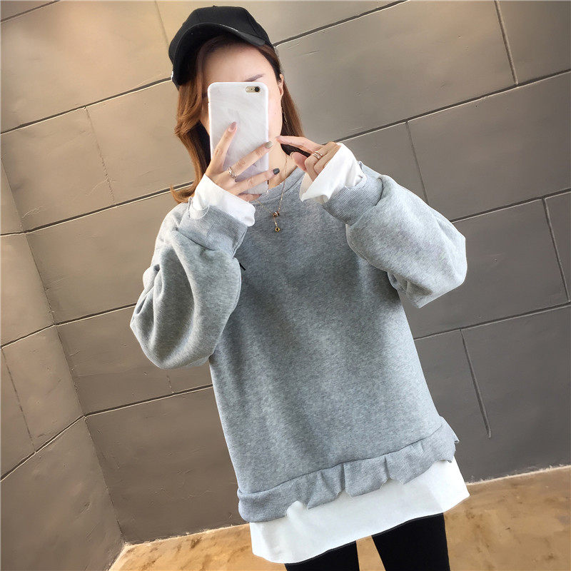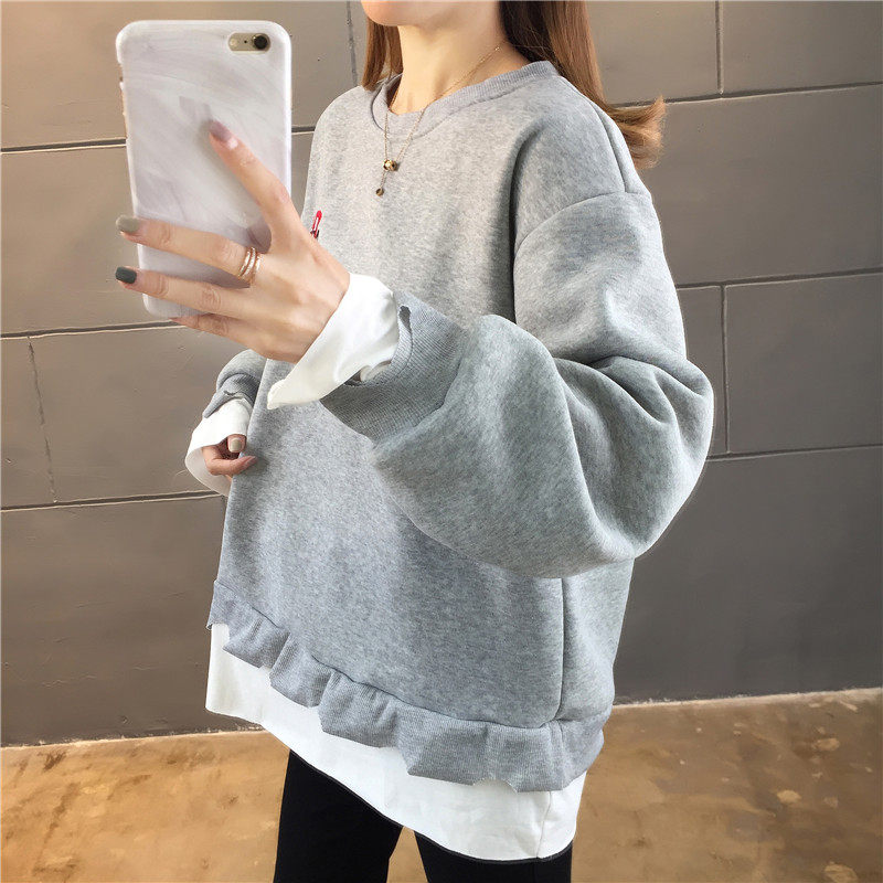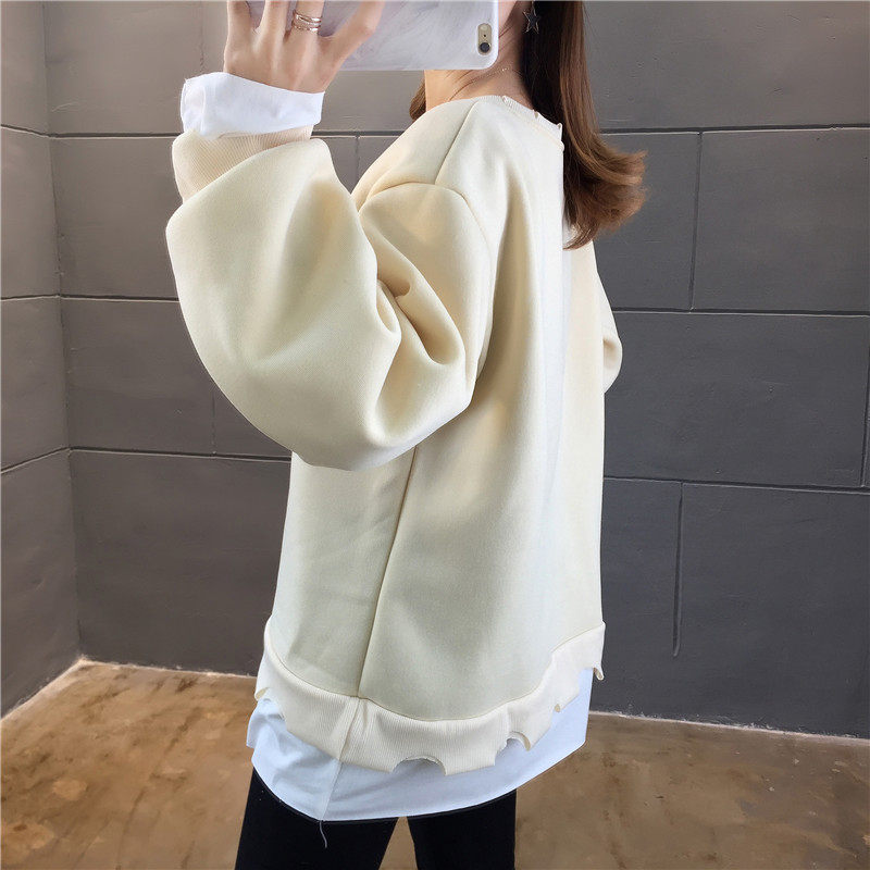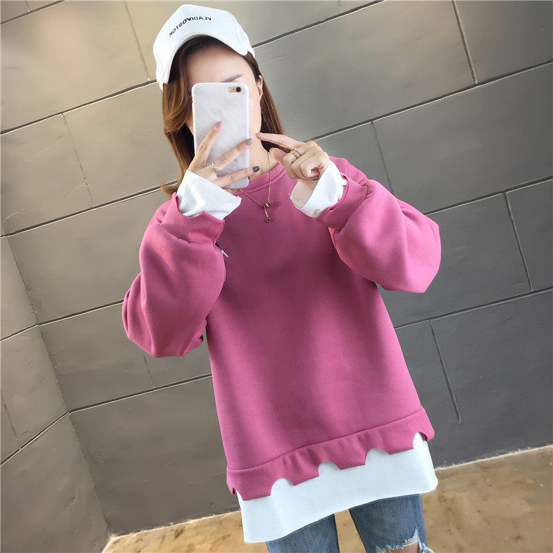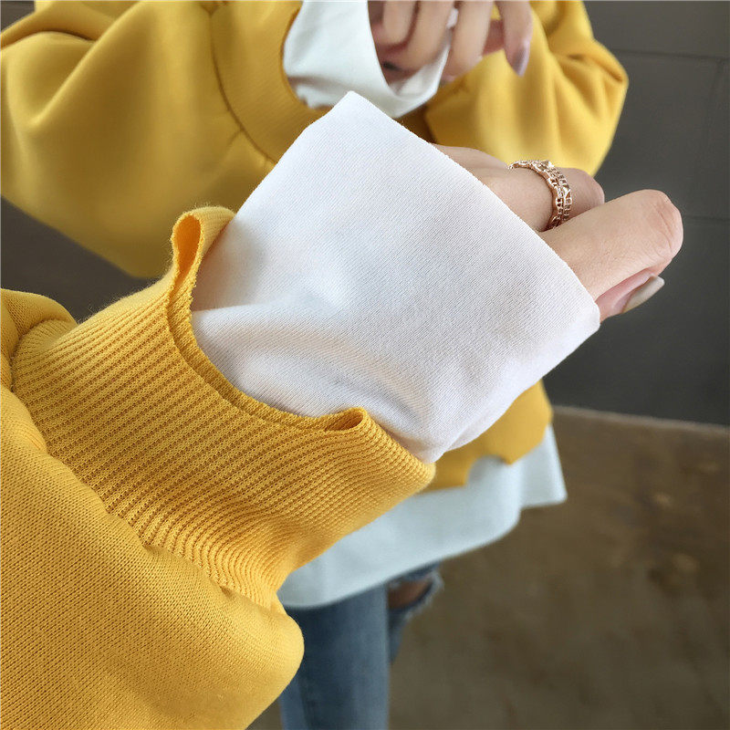 Real shot winter clothes new Korean fashion crew neck letter printing fake two loose and plush sweater women