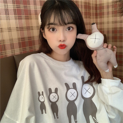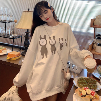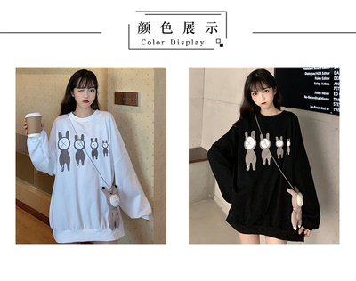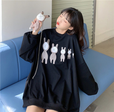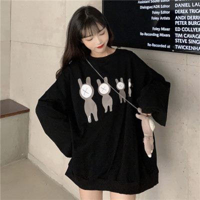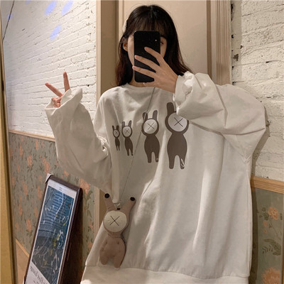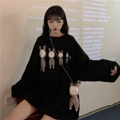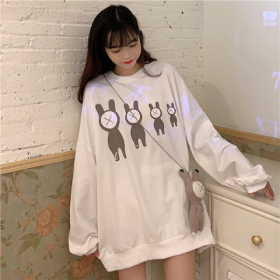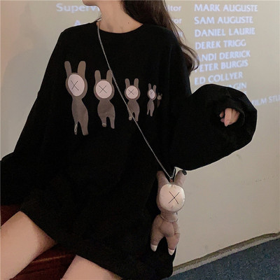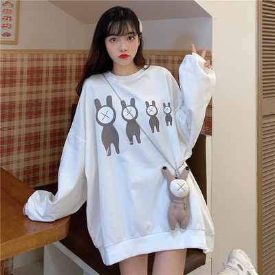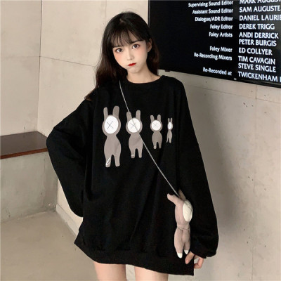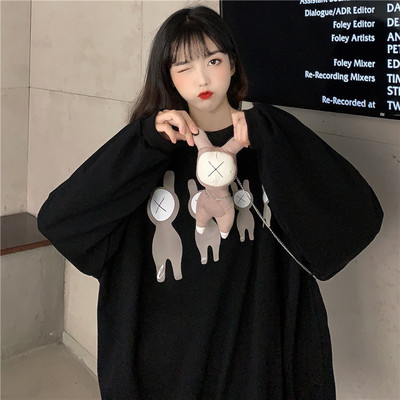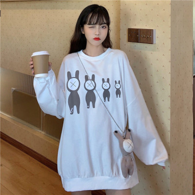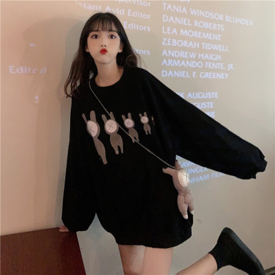 Official picture Plush thickened Korean new Slouchy loose crew neck cartoon printed student sweater