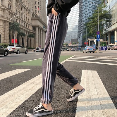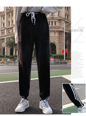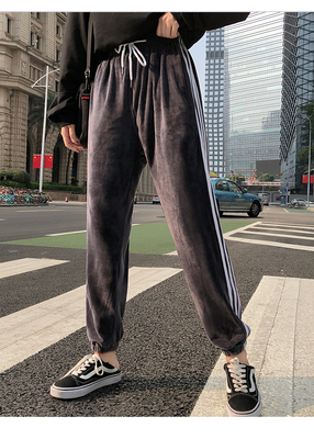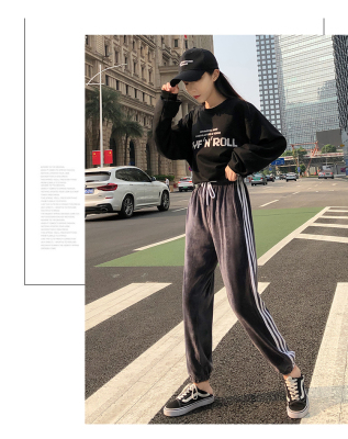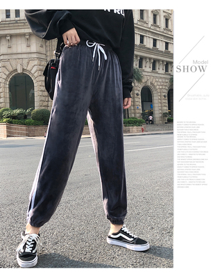 Women's gold velvet sports pants pants autumn and winter casual loose corset feet wear new thin Harem Pants