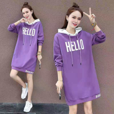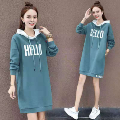Sweater women's long sleeve autumn / winter 2020 cashmere printed multi-functional bodywear dress with hoods loose mid length top