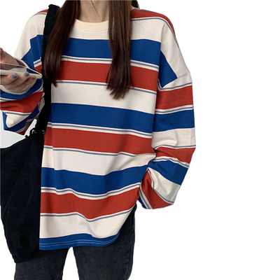 Official picture sweater women's Korean version 2020 spring and autumn stripe thin 75% polyester 25% cotton