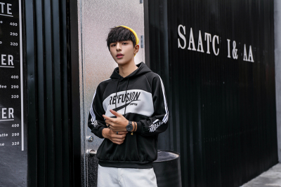 Autumn and winter Plush thickened inset color hooded casual loose versatile sweater