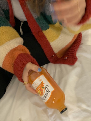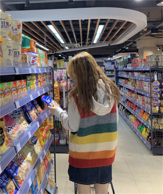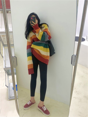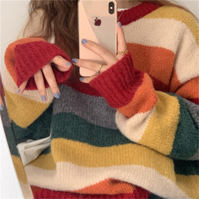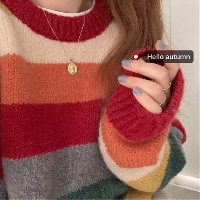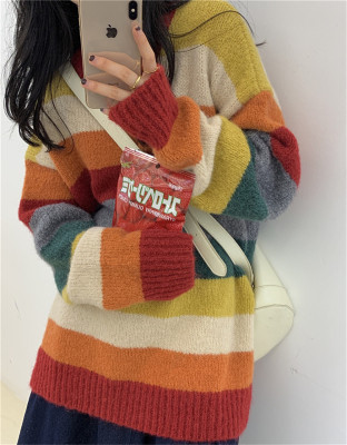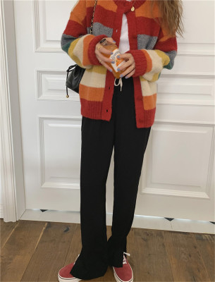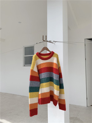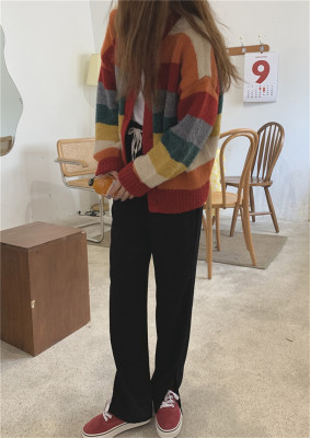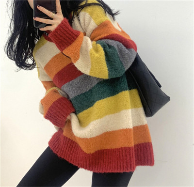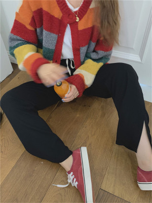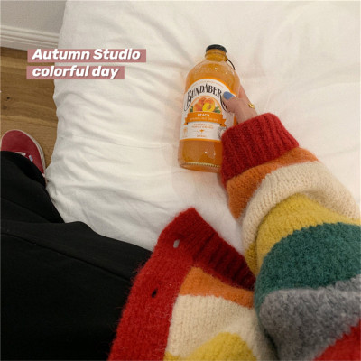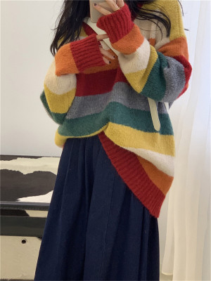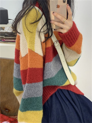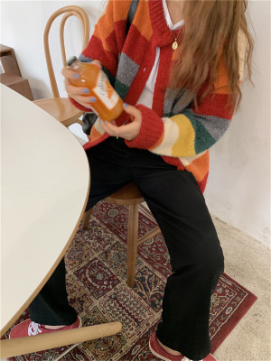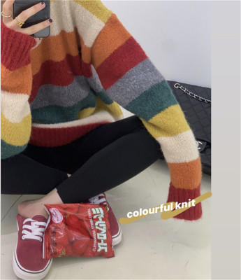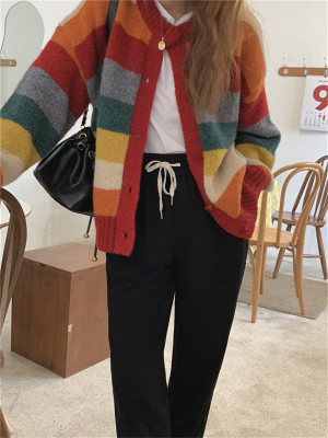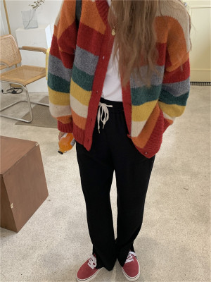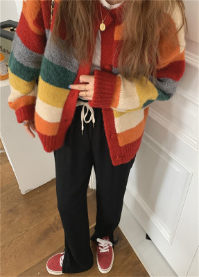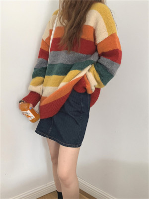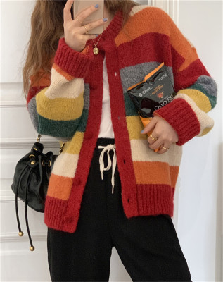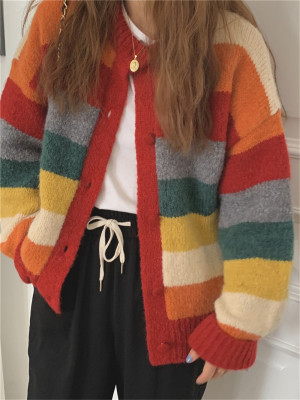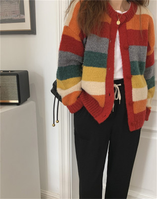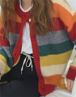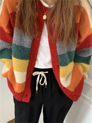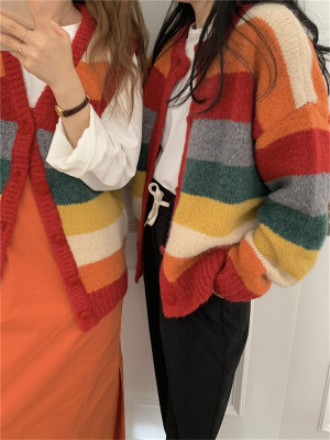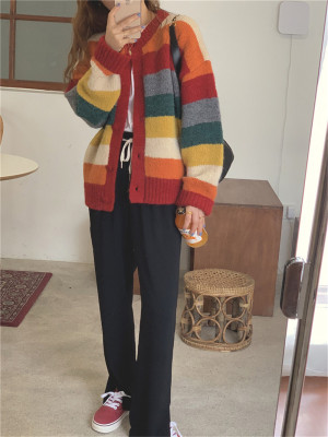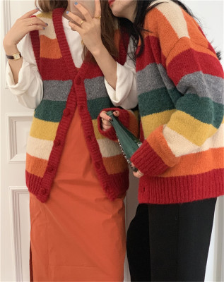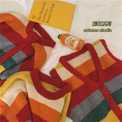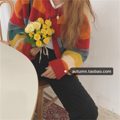 Autumn Jun autumn rainbow knitted cardigan women's autumn winter loose waistcoat outer sweater 2020 new coat