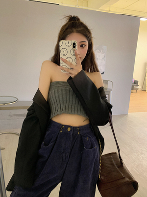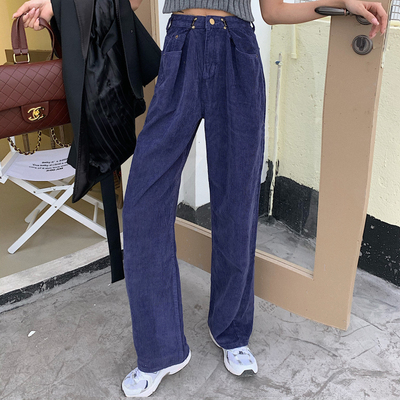 Real price corduroy original high waist and wide leg thin version super positive Korean straight tube pants