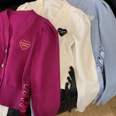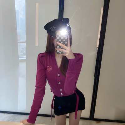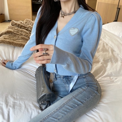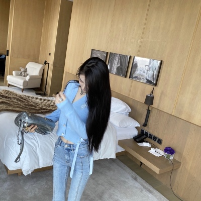 Winter 2020 new letter Embroidered Bra fashionable bandage short V-neck cardigan jacket for women