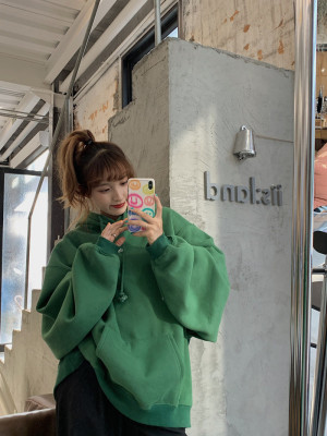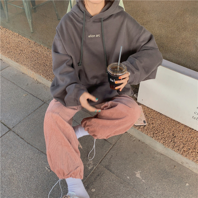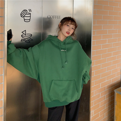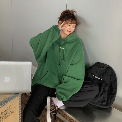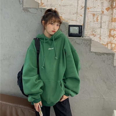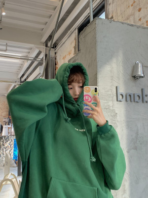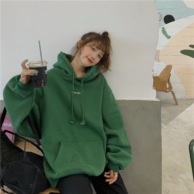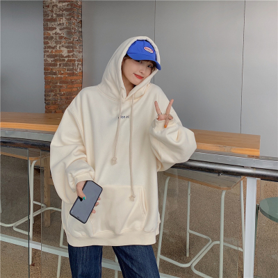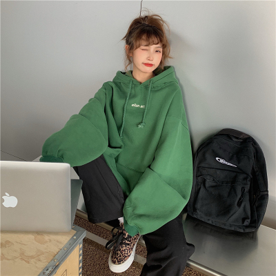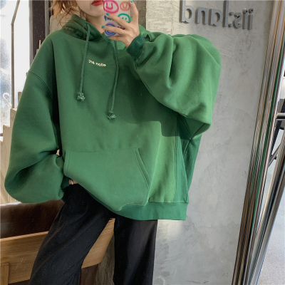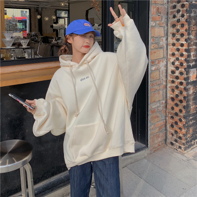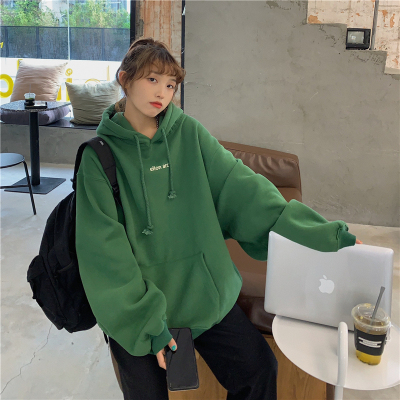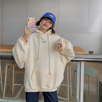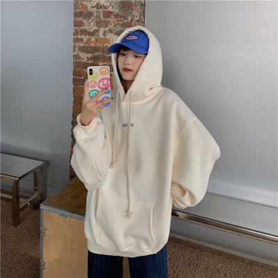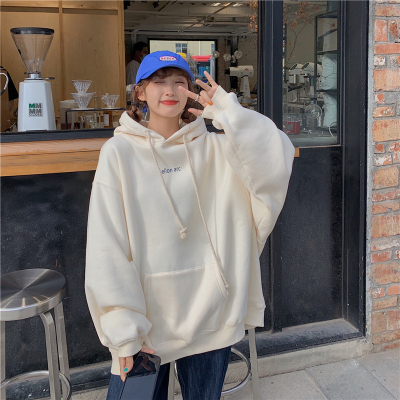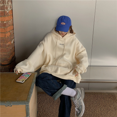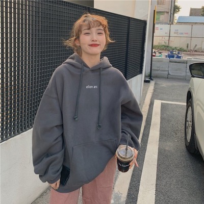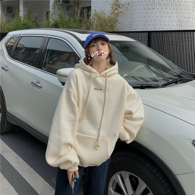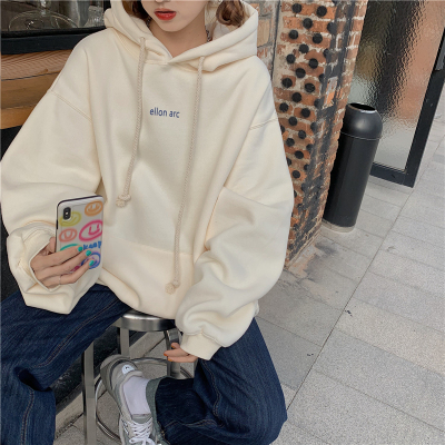 Winter and autumn 2020 cashmere and thickened winter Korean version of Harajuku style simple letter printed hooded sweater women's ancient works