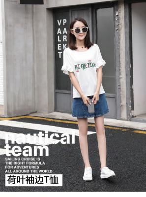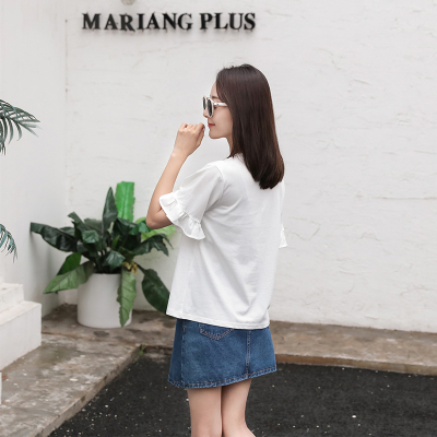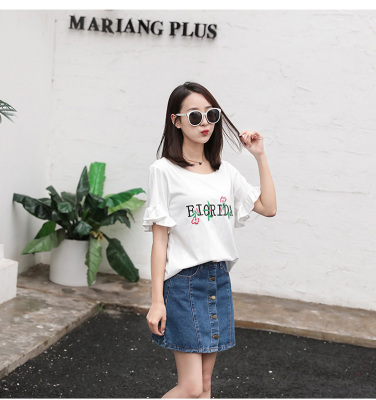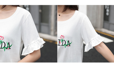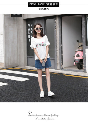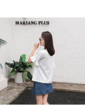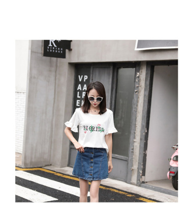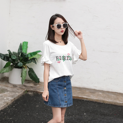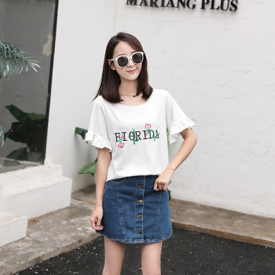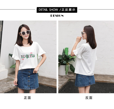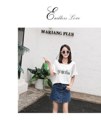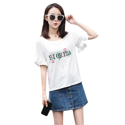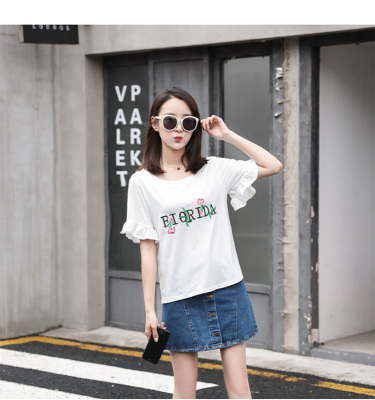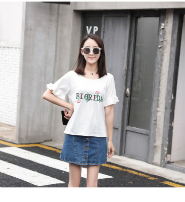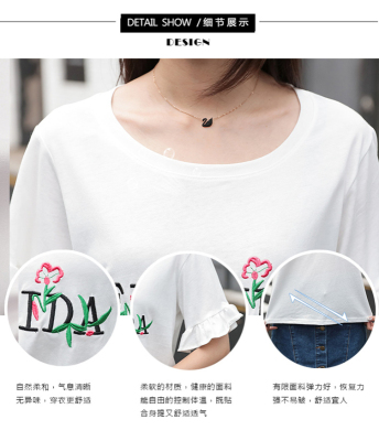 Spring 2021 new school style sweet short sleeve T-shirt women's loose top with thin embroidery