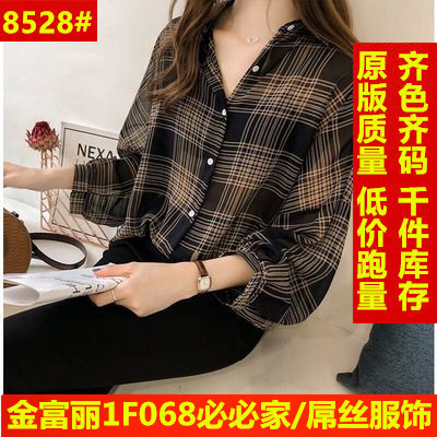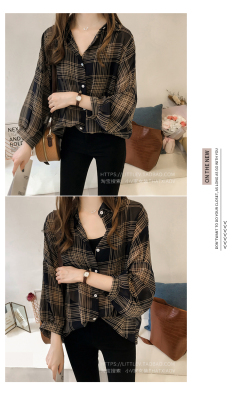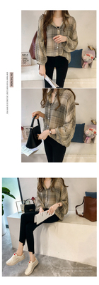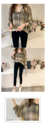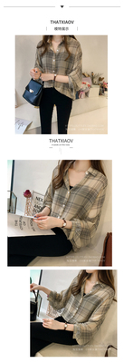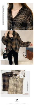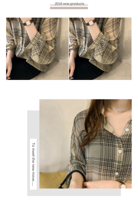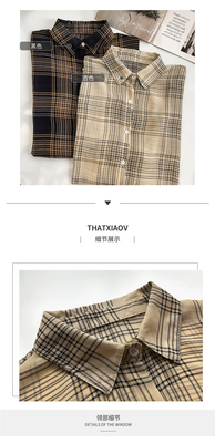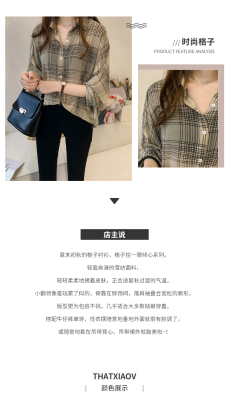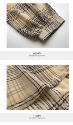 Summer Lapel Plaid print shows thin temperament women's cardigan simple top loose long sleeve breathable thin shirt coat