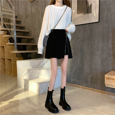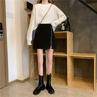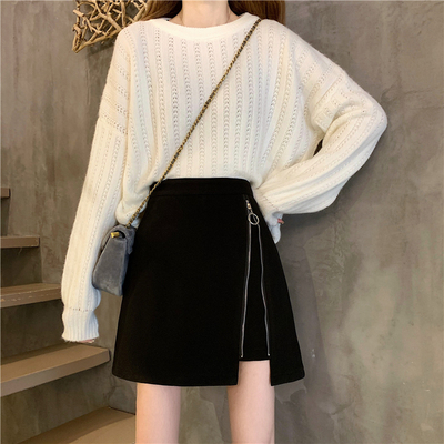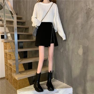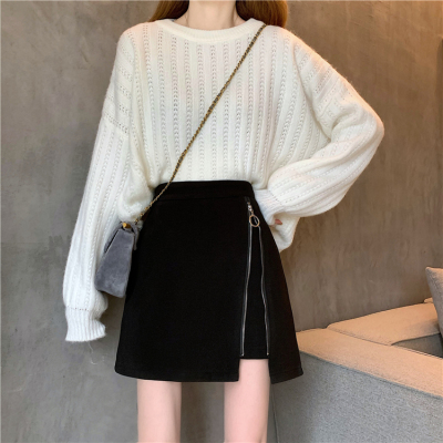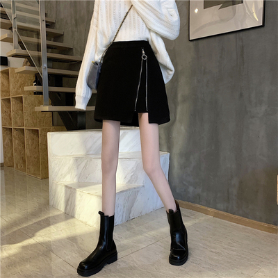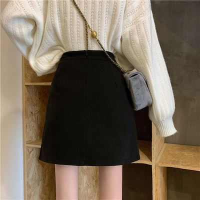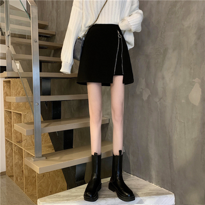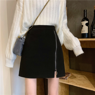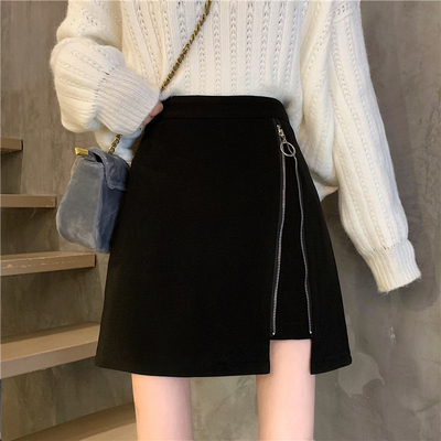 Real price ~ autumn and winter new fashion woolen skirt women's irregular and versatile high waist A-line hip skirt
