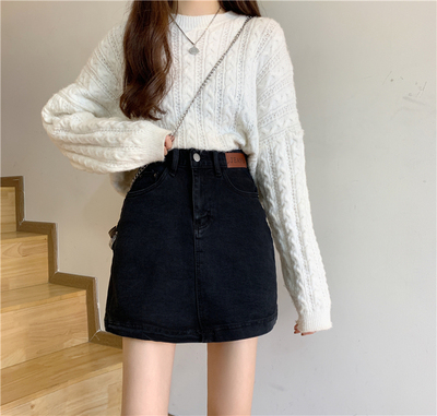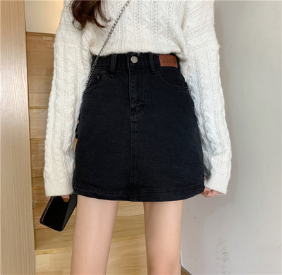Real shot real price ~ New Korean high waisted slim black denim skirt for women