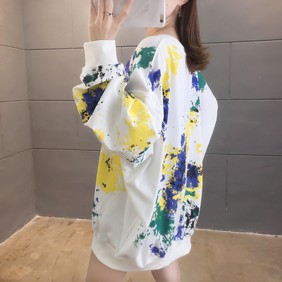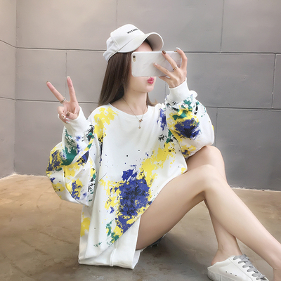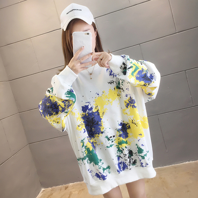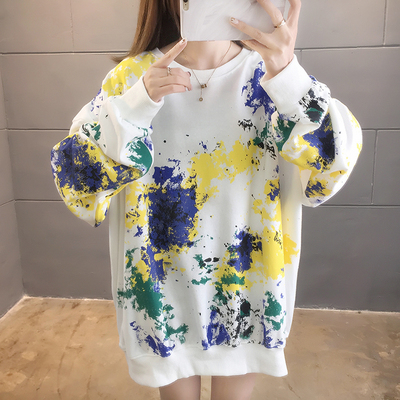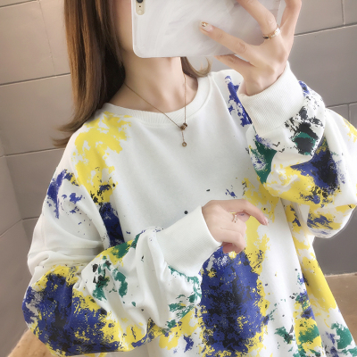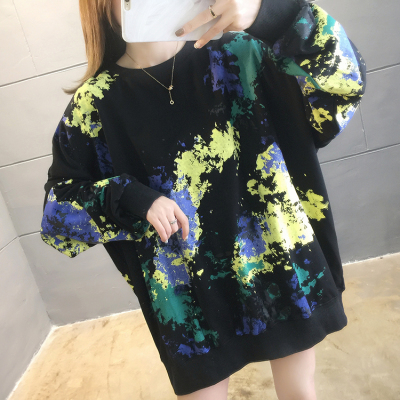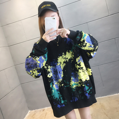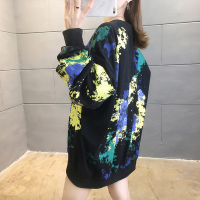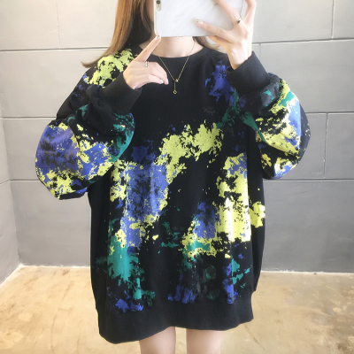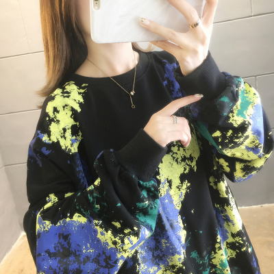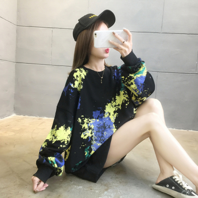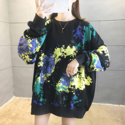 Spring 2021 real shot ~ New Korean loose oversized women's wear versatile round neck tie dye thin sweater 200kg mm