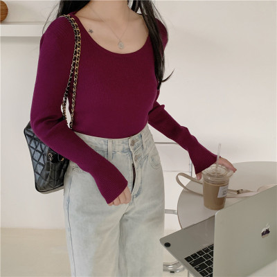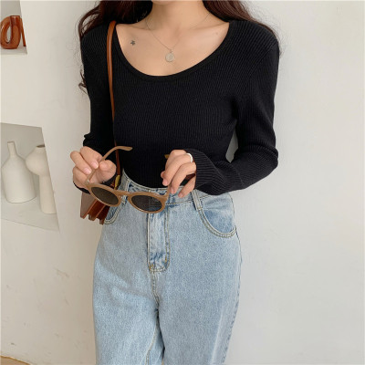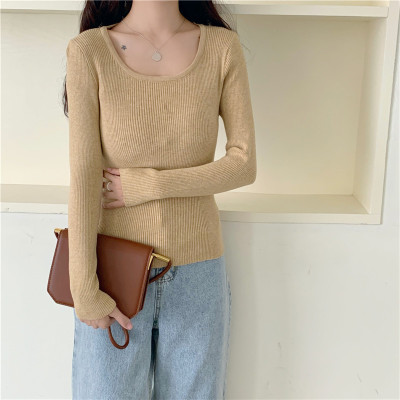 Real shot 2020 Korean version of autumn and winter big U-neck slim six wool knitting base, versatile wear