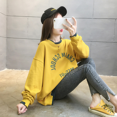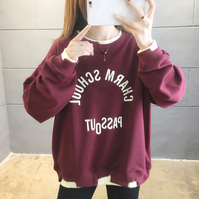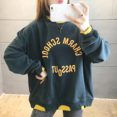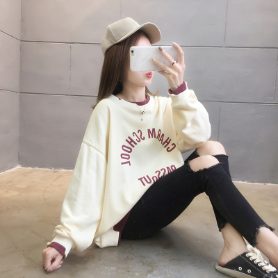 Spring 2021 shooting ~ new super fire CEC loose Korean long sleeve fake two piece set