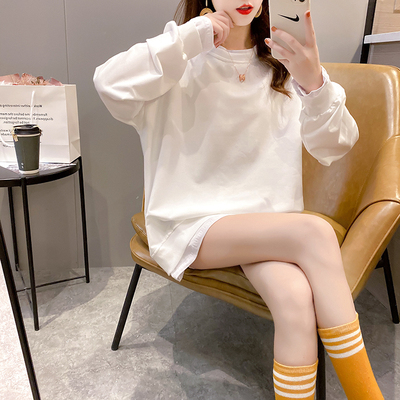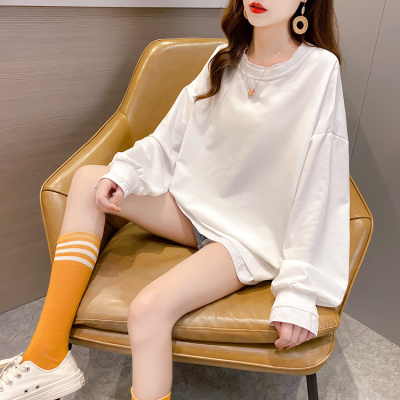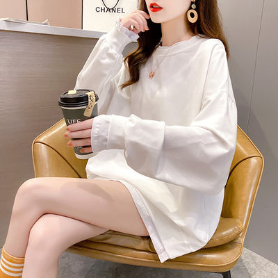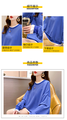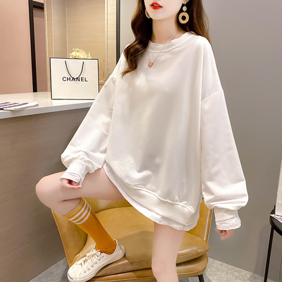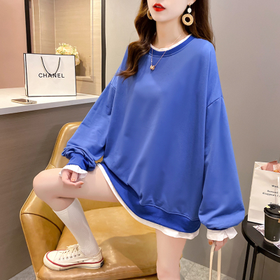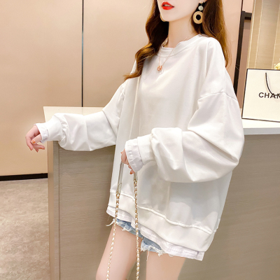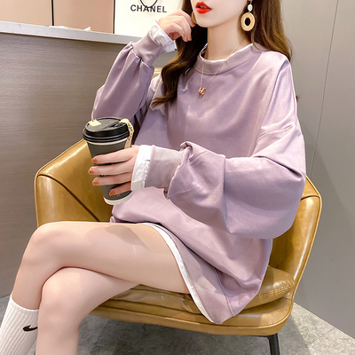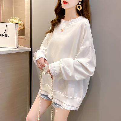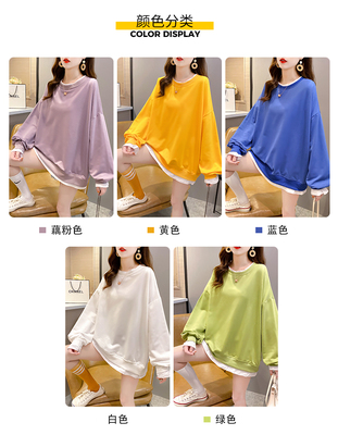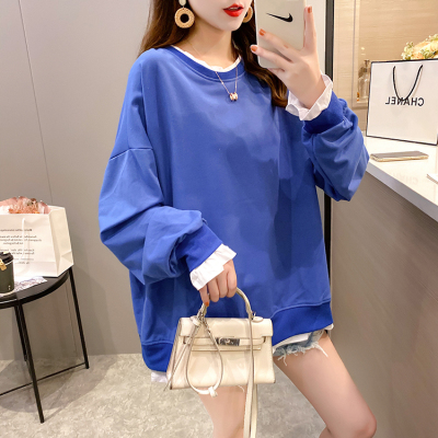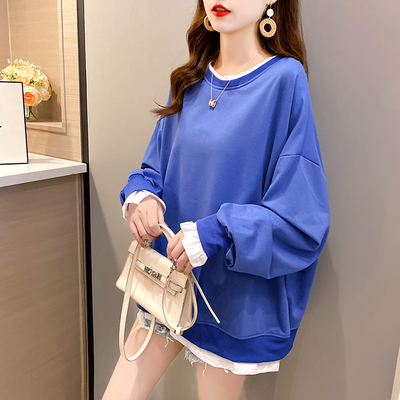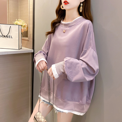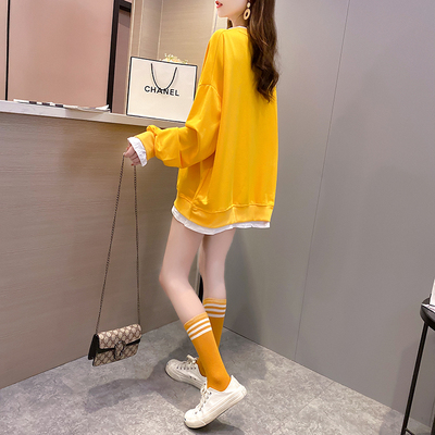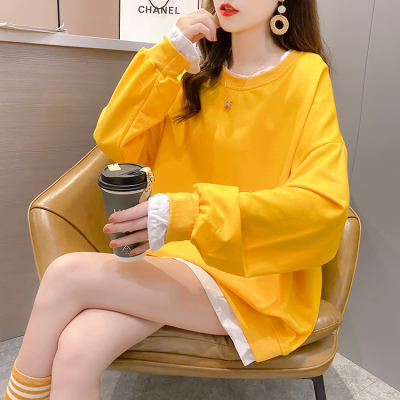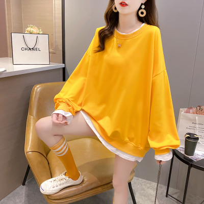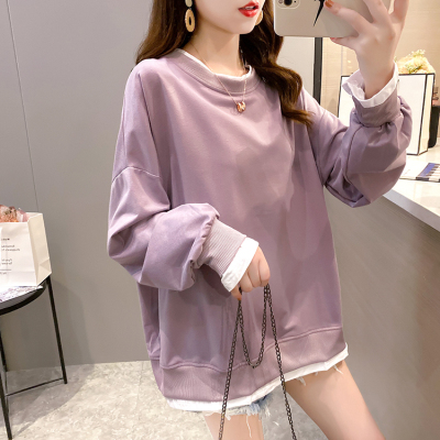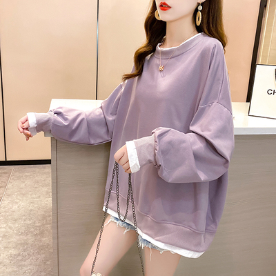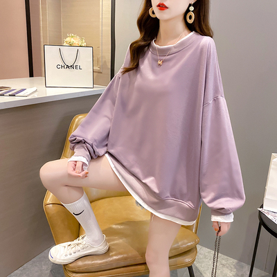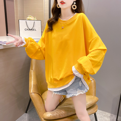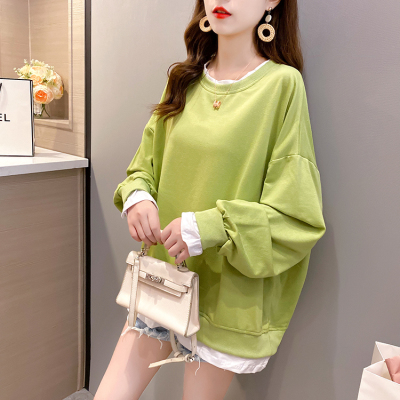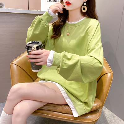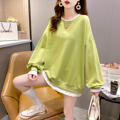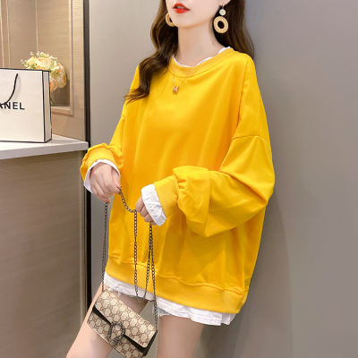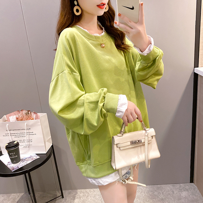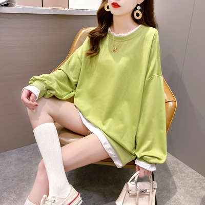 Real photo of 2021 spring clothes - New Korean loose size women's solid color fake two piece set, thin style, 200 Jin