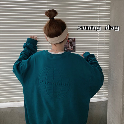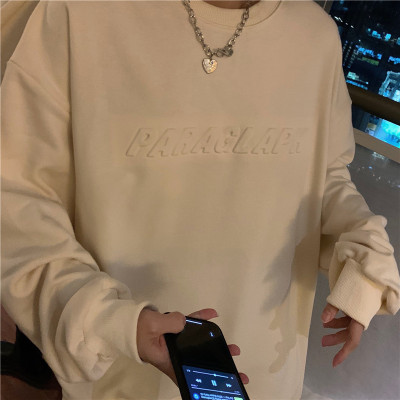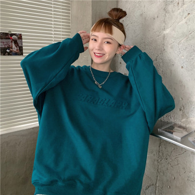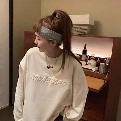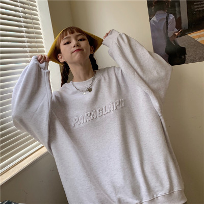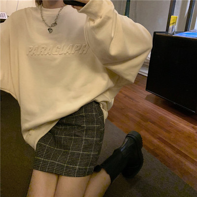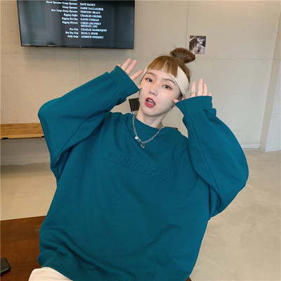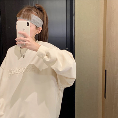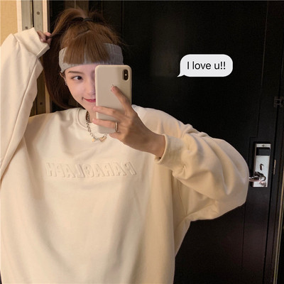 Real photo of 2021 Spring Dress ~ new long sleeve round neck letter student versatile loose Korean BF Gangfeng top