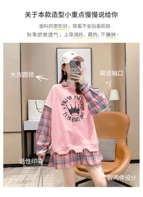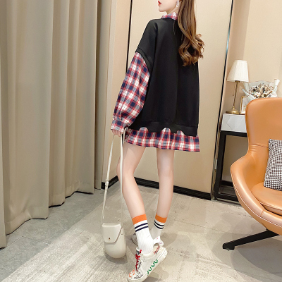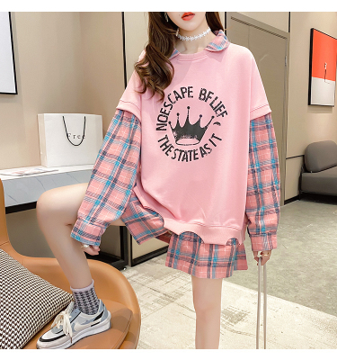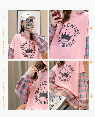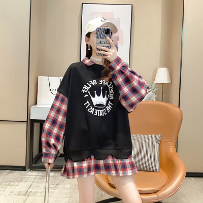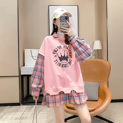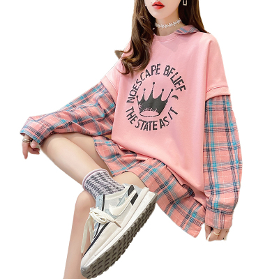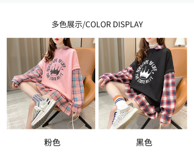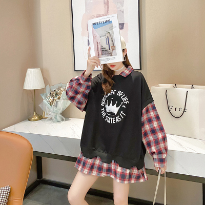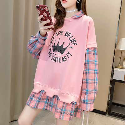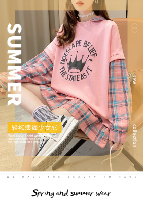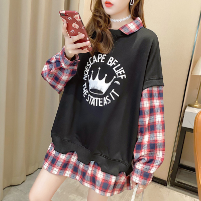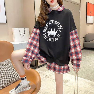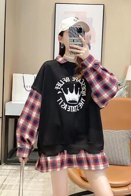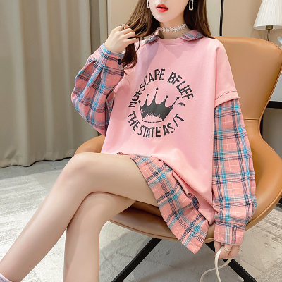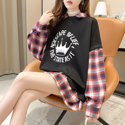 Real photo 2021 spring Korean loose cotton polo collar stitching two pieces of medium length large size women's sweater