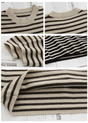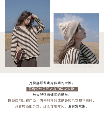 Lunch break all staff reserved striped woolen sweater coat women's autumn and winter loose lazy knitwear Japanese top