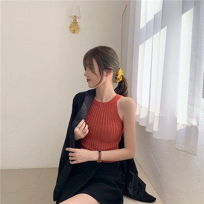 Real price new early spring suspender knitted vest women's sleeveless top with neck and shoulder leakage