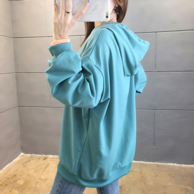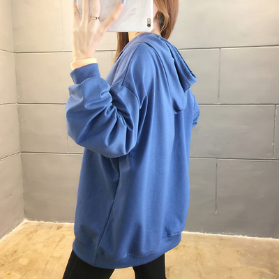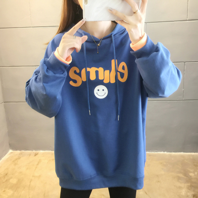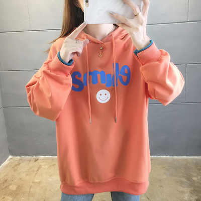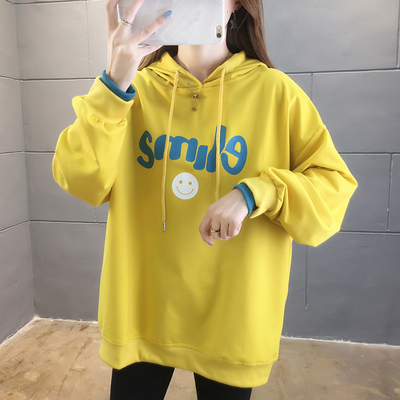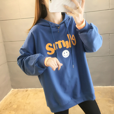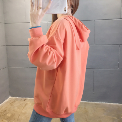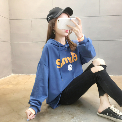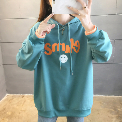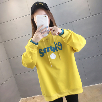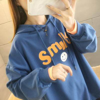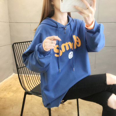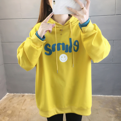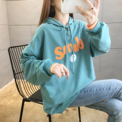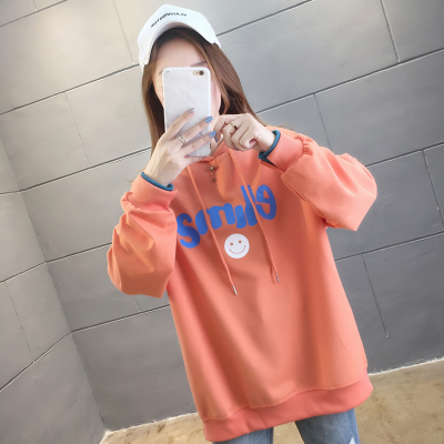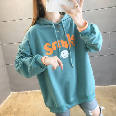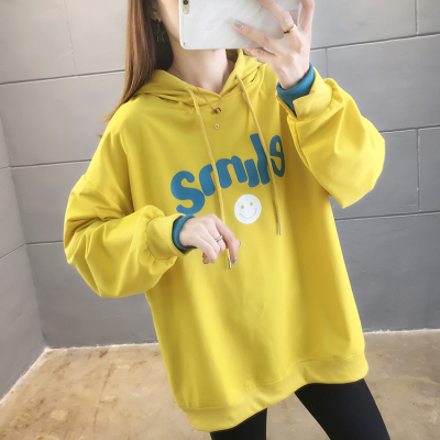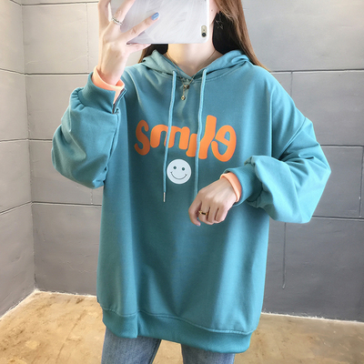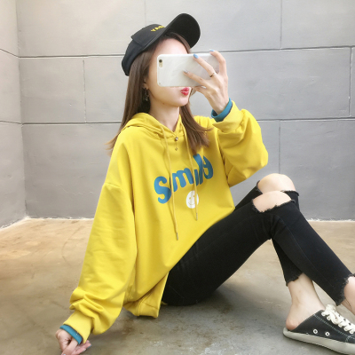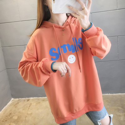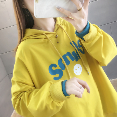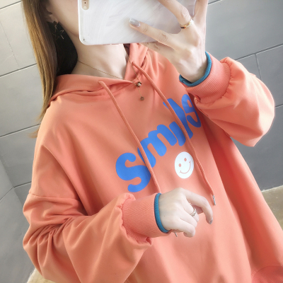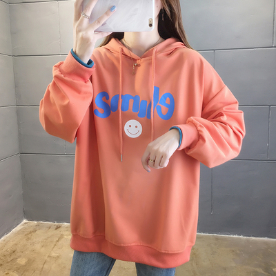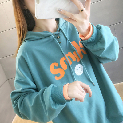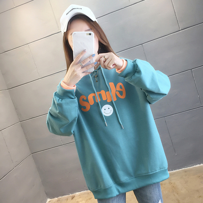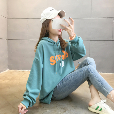 Real photo of 2021 spring dress - New Korean loose large size versatile hooded letter printed round neck thin sweater