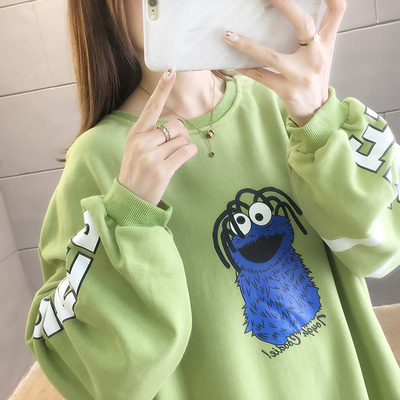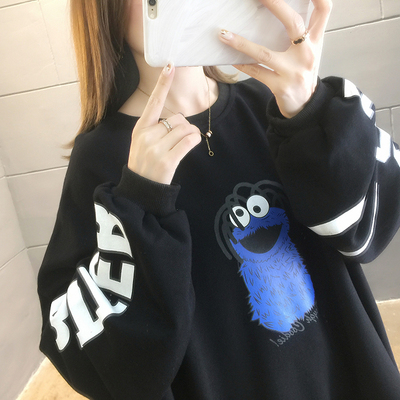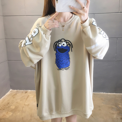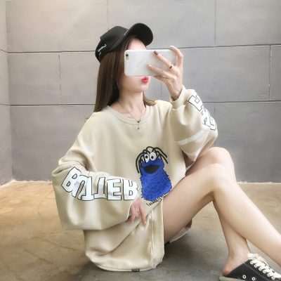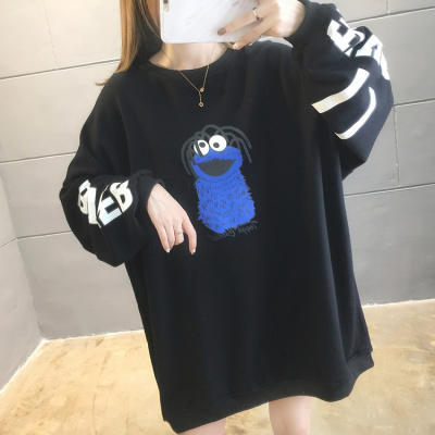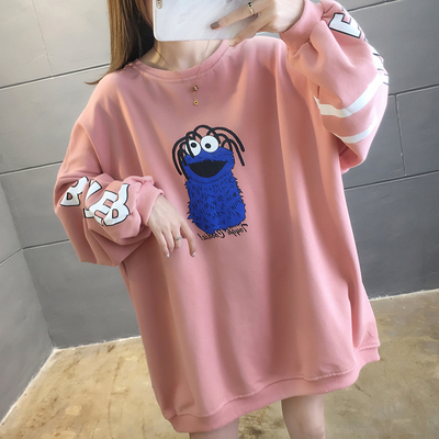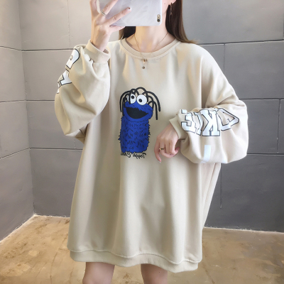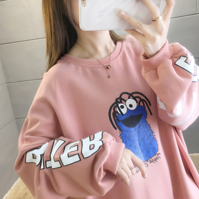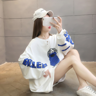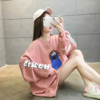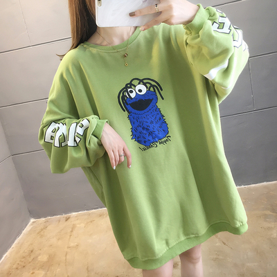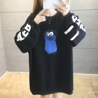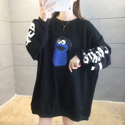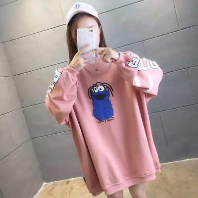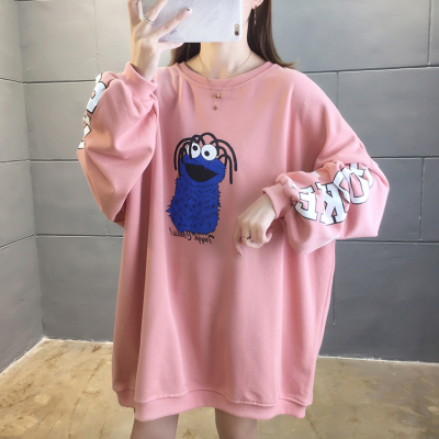 New super fire CEC long sleeve women's medium length cartoon printed sweater