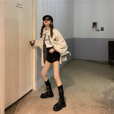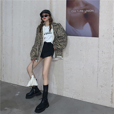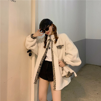 Real price design leopard print Plush coat on both sides women's loose grain Plush jacket
