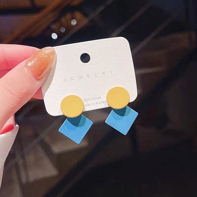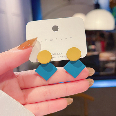 Real shot S925 silver needle Korean new contrast geometric Earrings temperament simple net red same Earrings