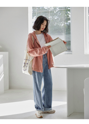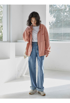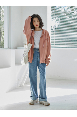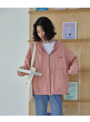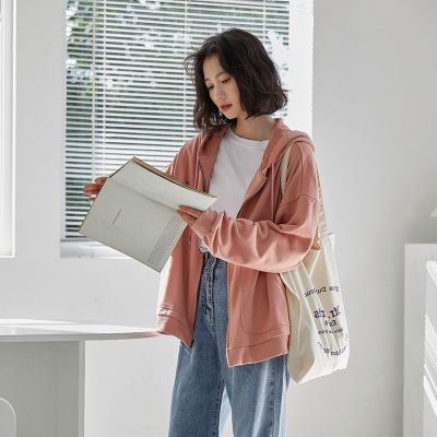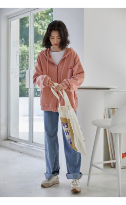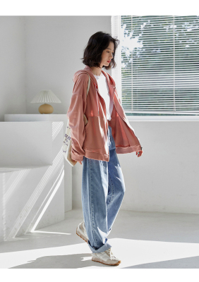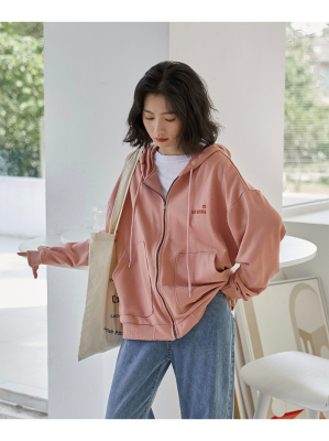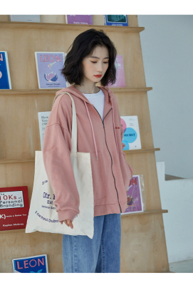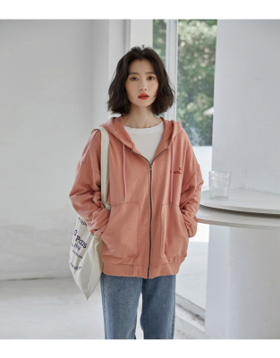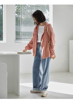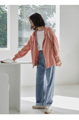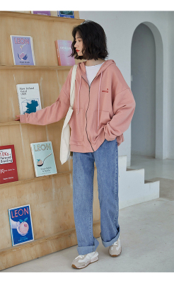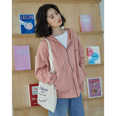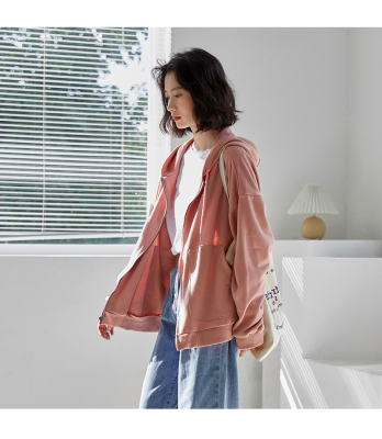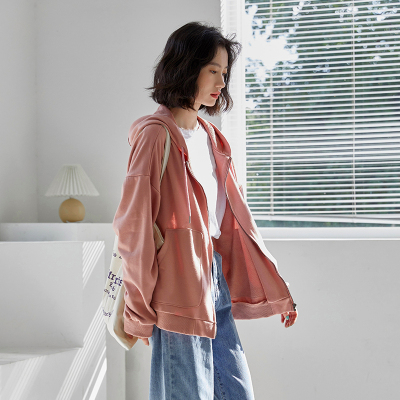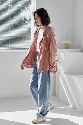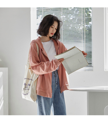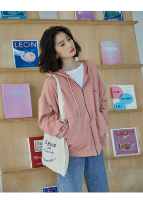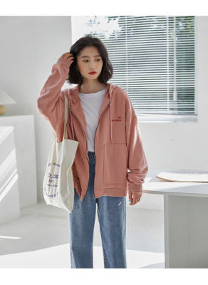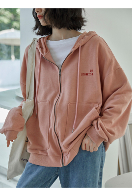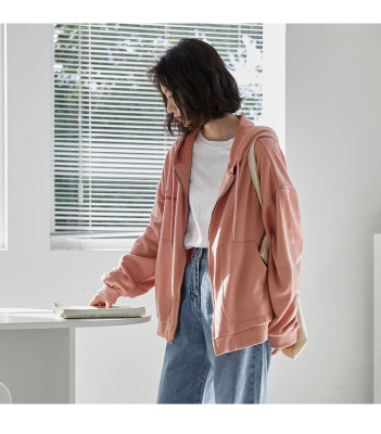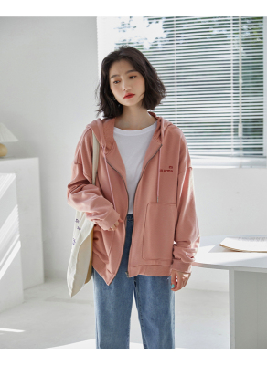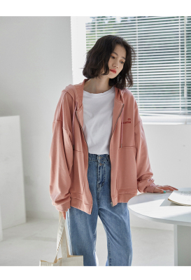 Real shot of new zipper sweater pocket Hooded Coat for women in early spring
