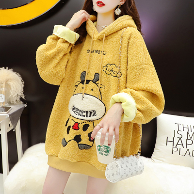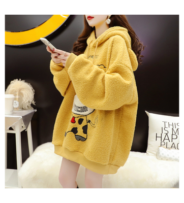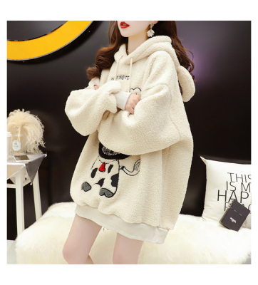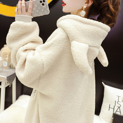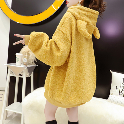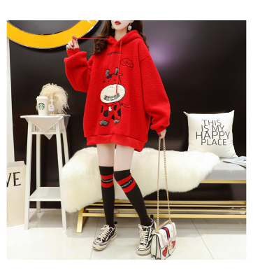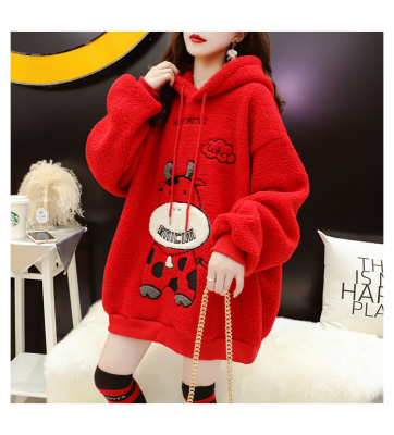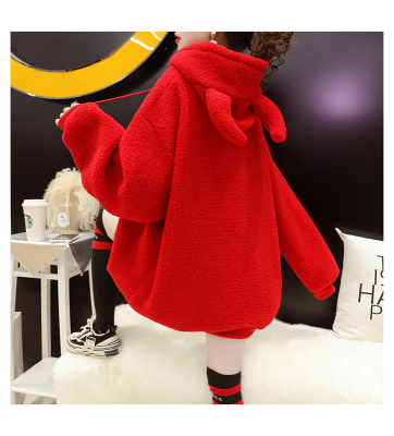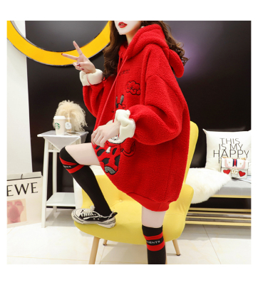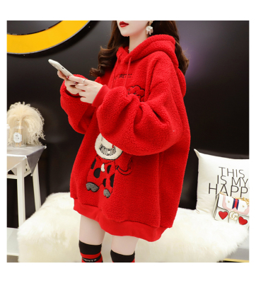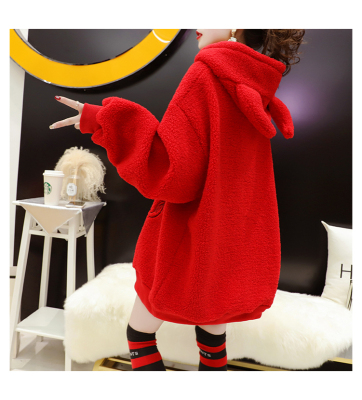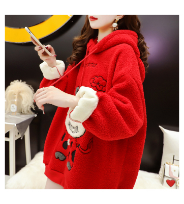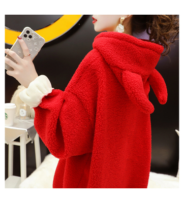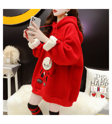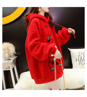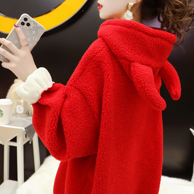 Guantu New Year red sweater women's Plush thickened medium length 2021 new spring loose lamb wool coat