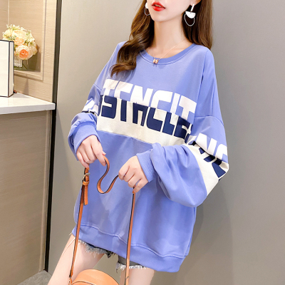 Real photo of 2021 Spring Dress ~ New Korean lettering print color matching loose round neck and slim fat mm sweater