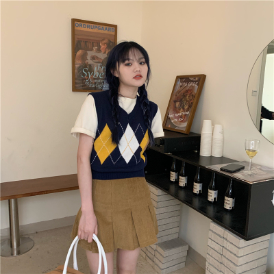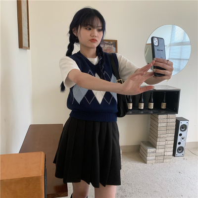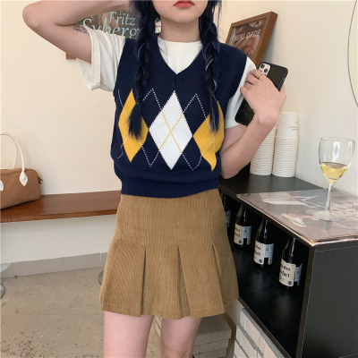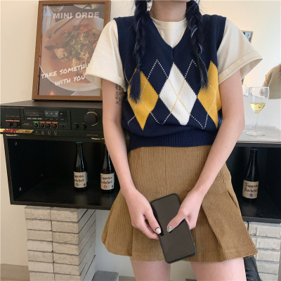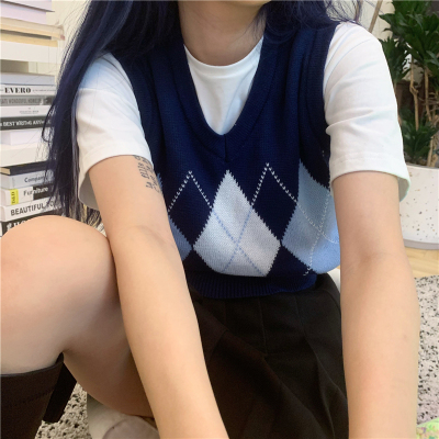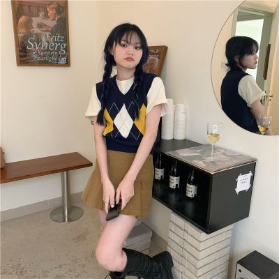 Real price, versatile, slim, British college V-neck knitted sleeveless vest
