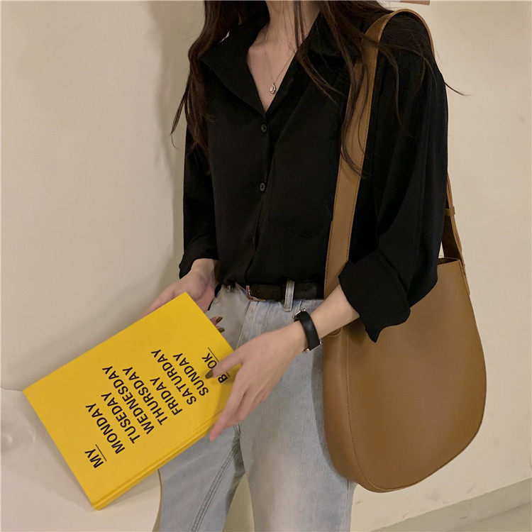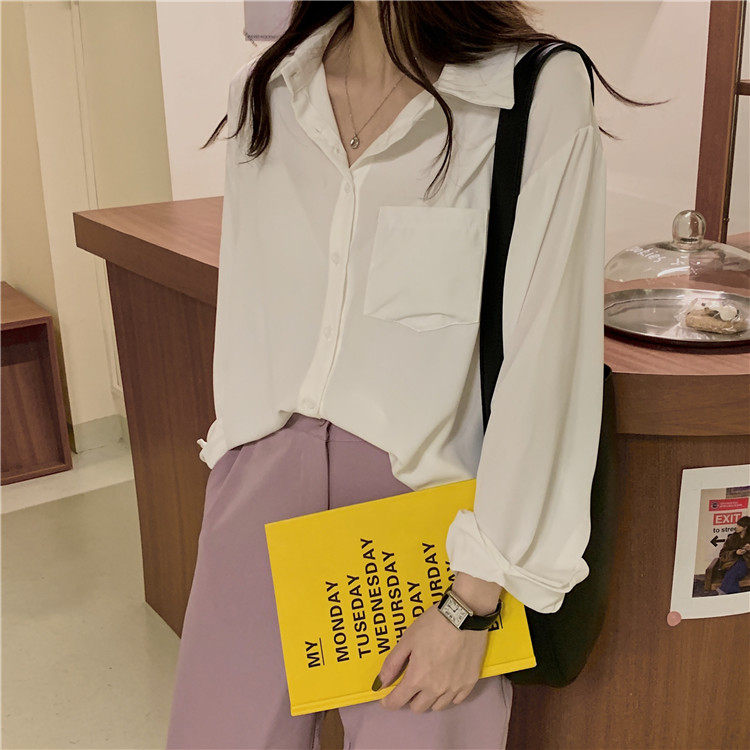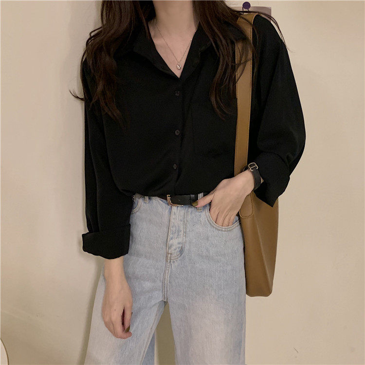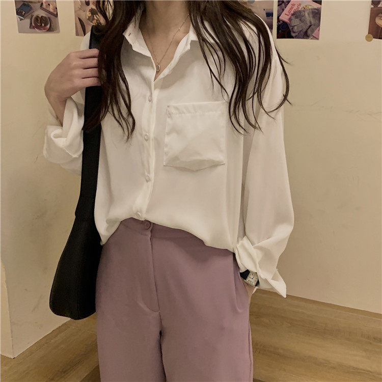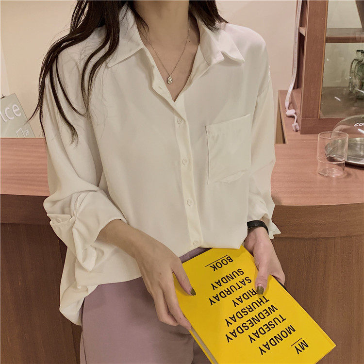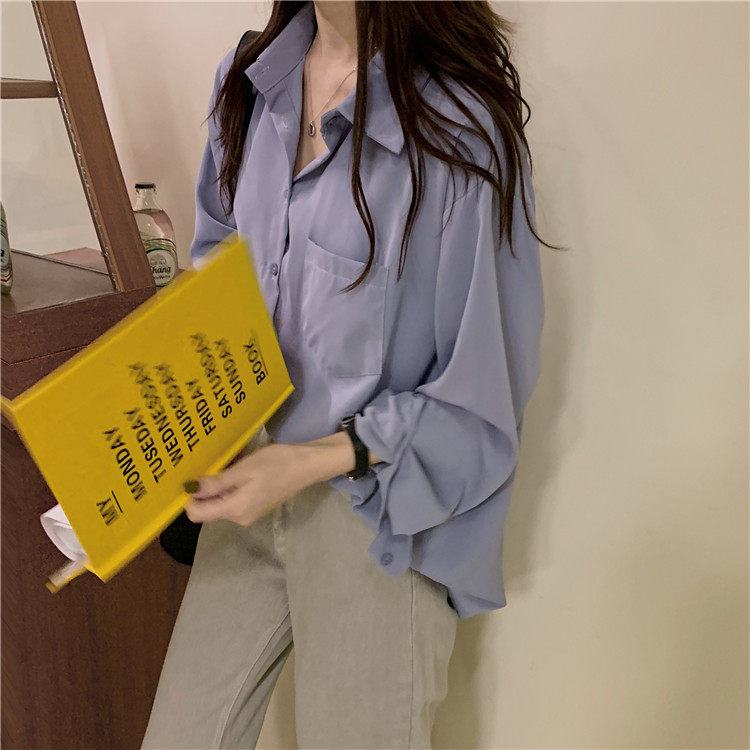 Shirt womanliness lazy wind early autumn Korean loose and thin long sleeve shirt top 2021